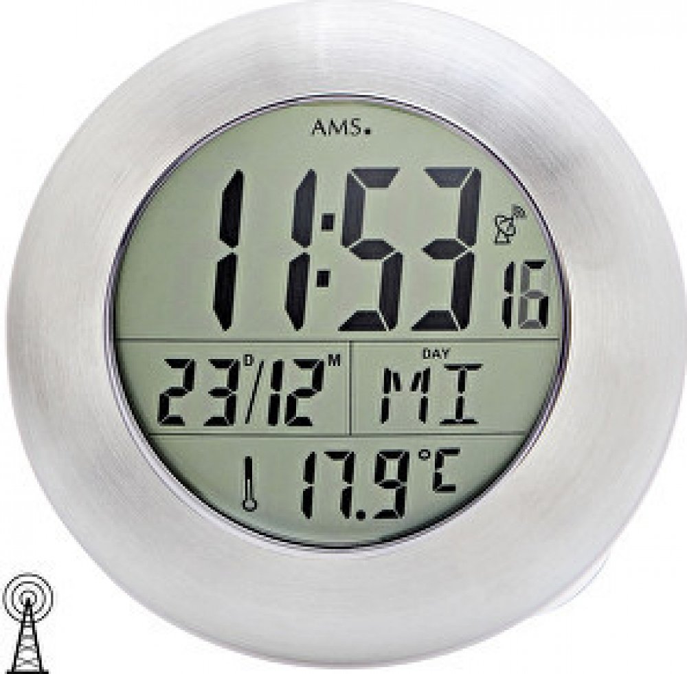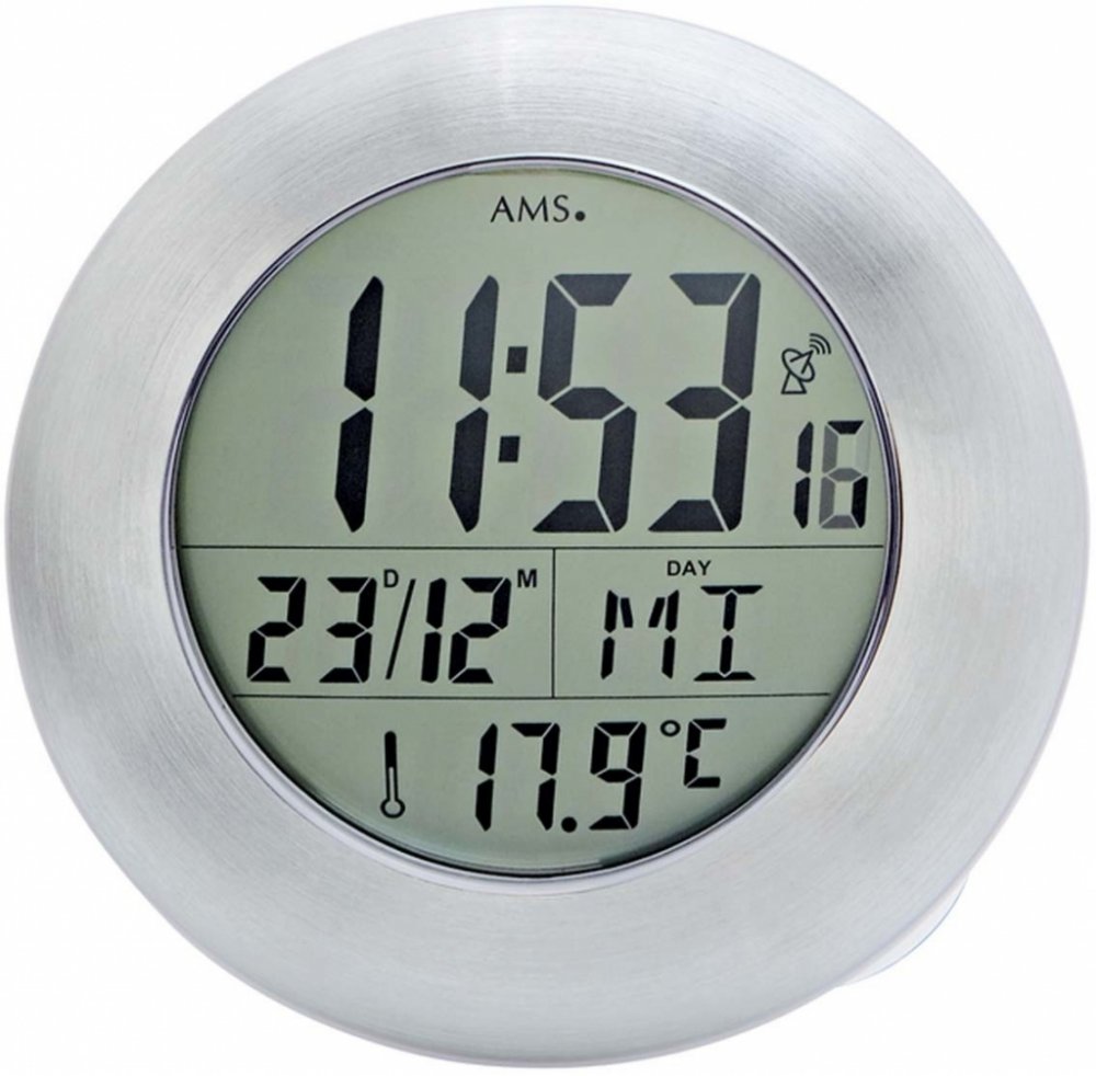Digitální vlhkuvzdorné hodiny řízené signálem vhodné do koupelny nebo vlhkých prostor od německého výrobce AMS.