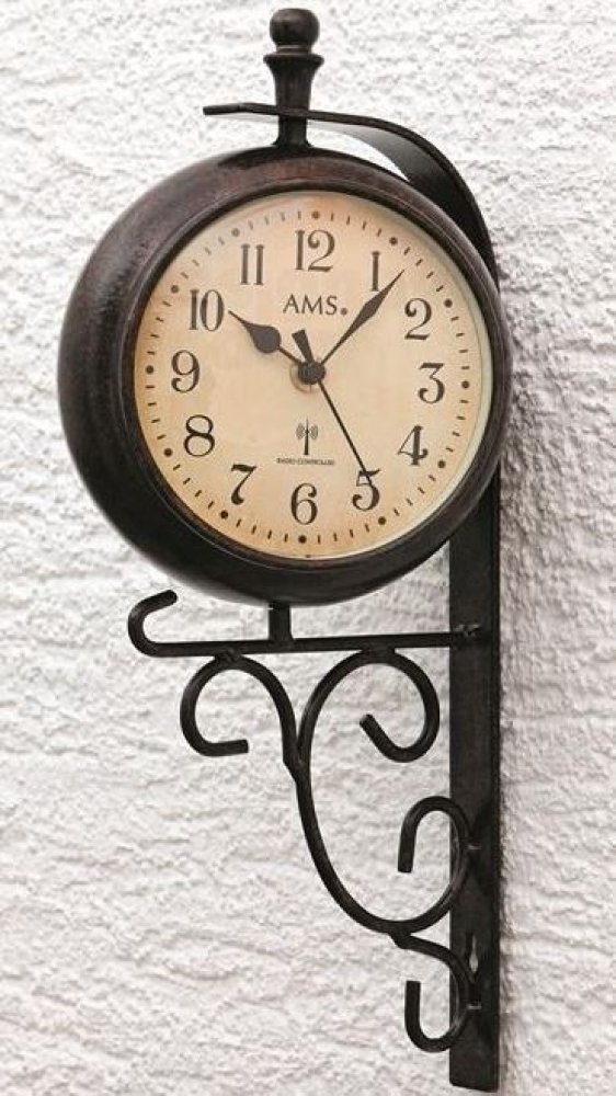 Nástěnné venkovní oboustranné voděodolné otáčecí hodiny v retro designu.