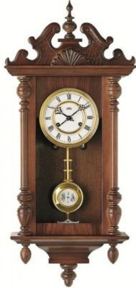Hodiny jsou vyrobeny z ořechového dřeva.