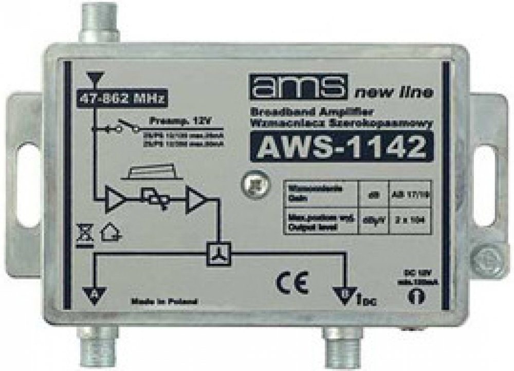AWS-1142 se používá k distribuci televizního signálu v domácích anténních instalacích. Regulace zesílení umožňuje přizpůsobit úroveň signálu v celé instalaci.