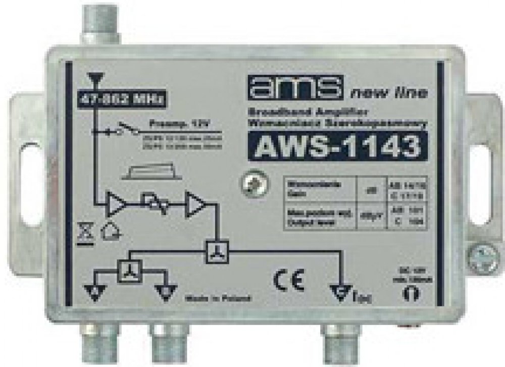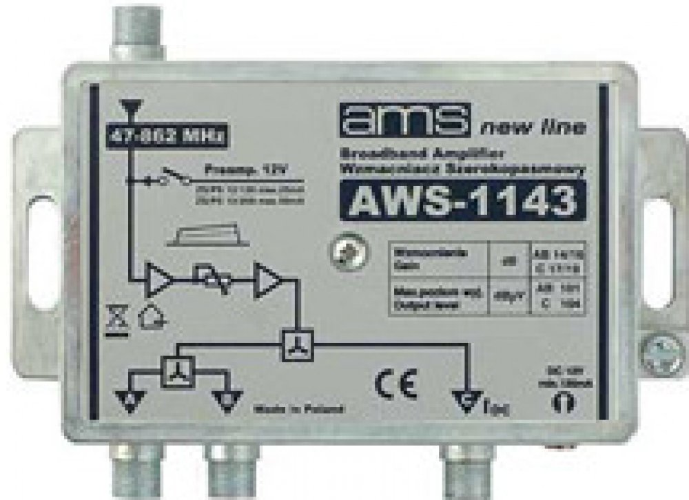 AWS-1143 se používá k distribuci televizního signálu v domácích anténních instalacích. Regulace zesílení umožňuje přizpůsobit úroveň signálu v celé instalaci.