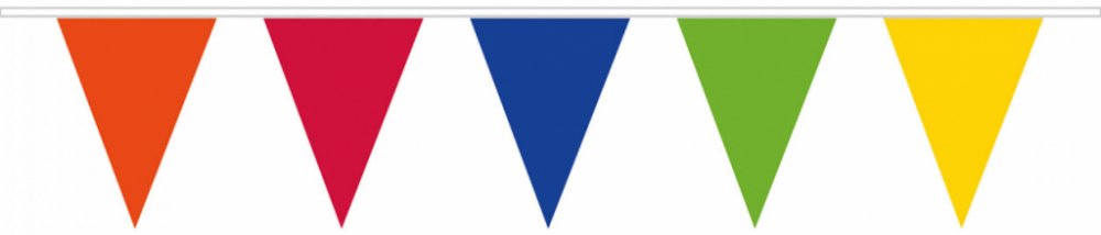 Girlanda z plastových vlajek v duhových barvách dlouhá 10 m, výška 32 cm.