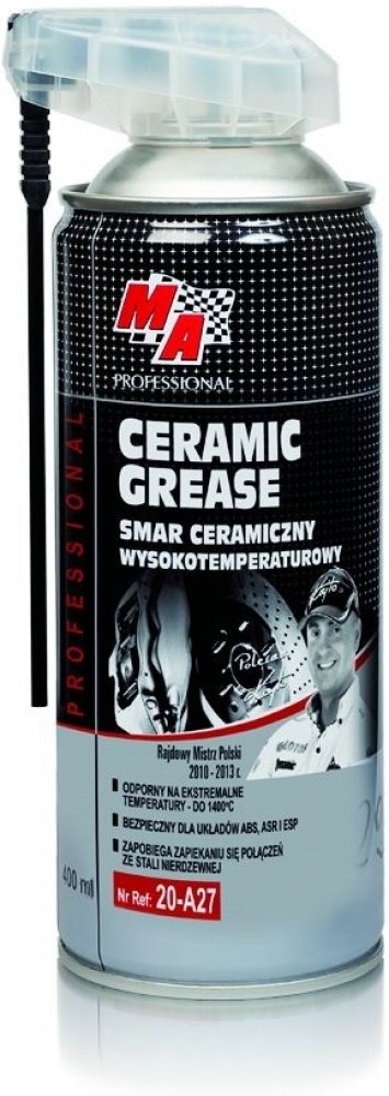 Keramické mazivo pro ochranu kovových prvků pracujících při teplotě do + 1400oC při vysokém zatížení. Používá se při brzdění, výfuku a dalších systémech vystavených vysokým teplotám. Ideální pro mazání šroubů během montáže, zabraňuje tomu, aby se prvky zachytily. Doporučujeme také pro práci na brzdových systémech s ABS, ASR a ESP. Vytváří odolný mazací film, který zvyšuje sklouznutí, chrání před korozí a agresivními faktory. Snižuje tření a opotřebení, potlačuje škubání a škubání