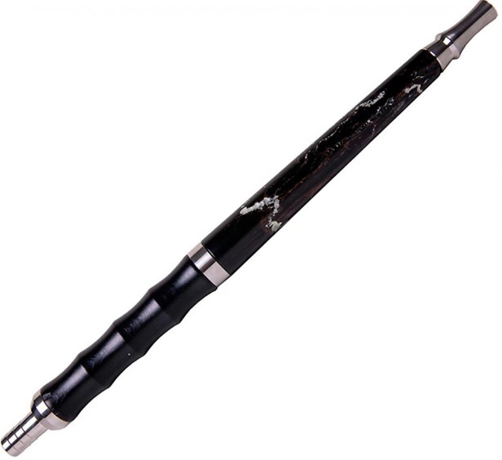 Stylový náustek AMY v černém provedení z nerezové oceli a dřeva s fluorescenční kresbou. Robustní, hygienický a pohodlný díky vlnitému povrchu. Pasuje na silikonové hadice.