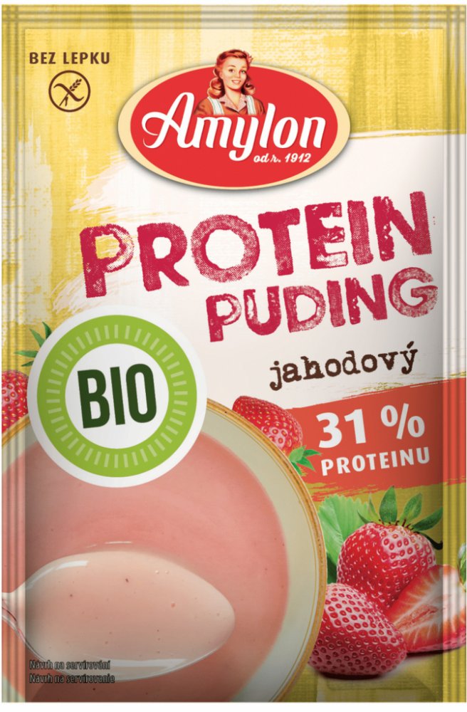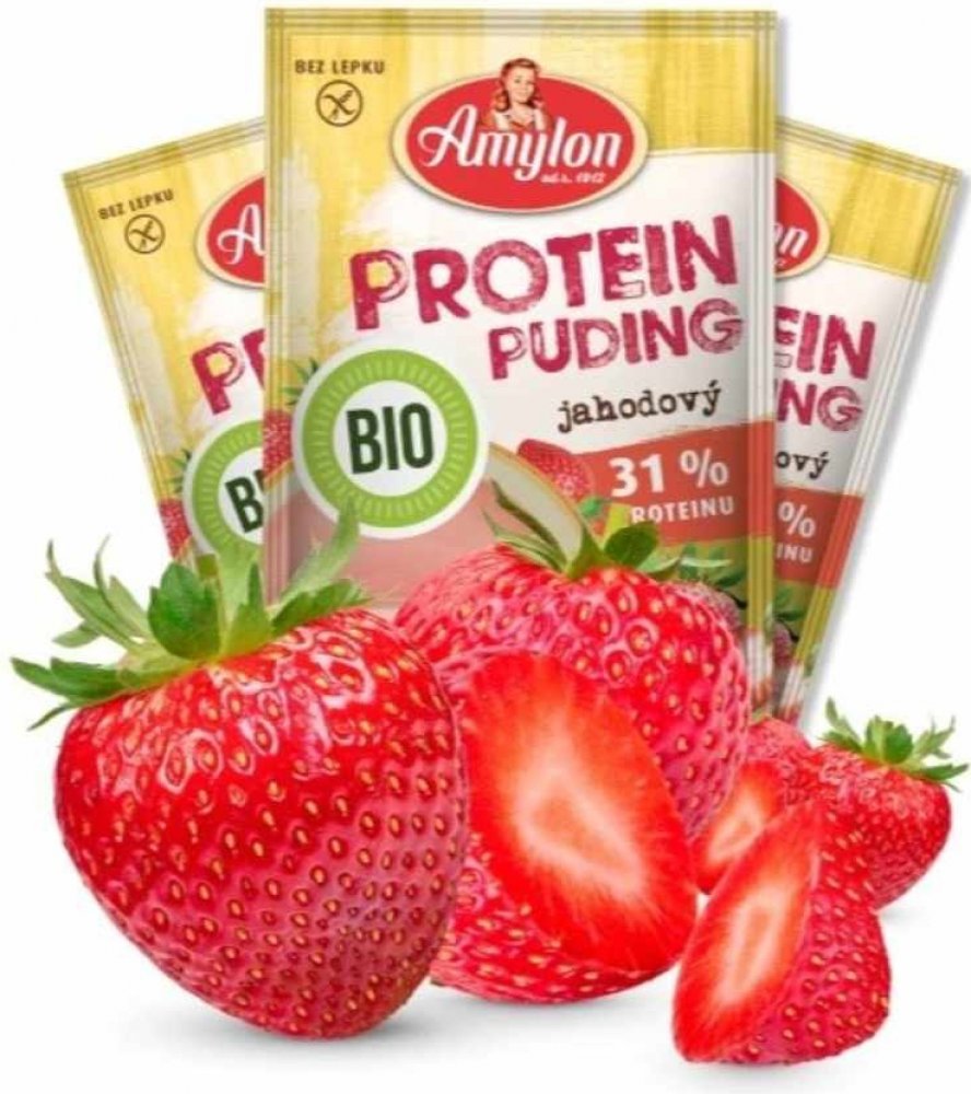 Amylon Protein Jahodový puding BIO bez lepku 45 g