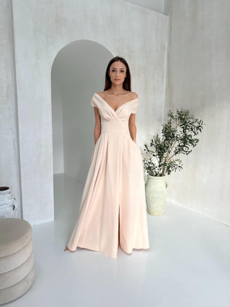 - Elegantní společenské šaty v béžové barvě
