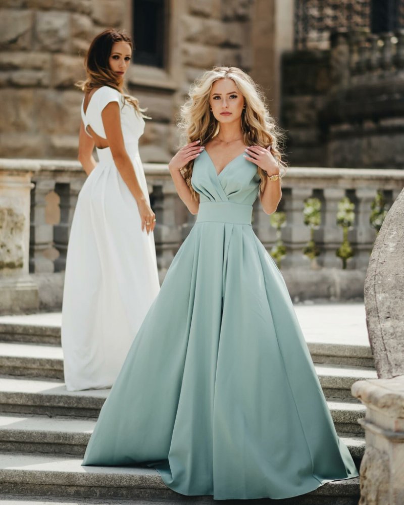 - Elegantní společenské šaty v zelené barvě
