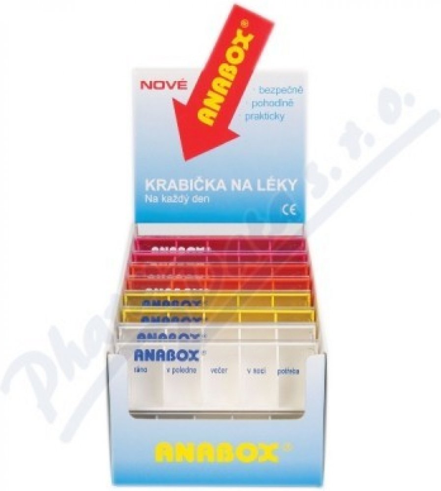Anabox Dávkovač na léky Denní box barevně rozliš.