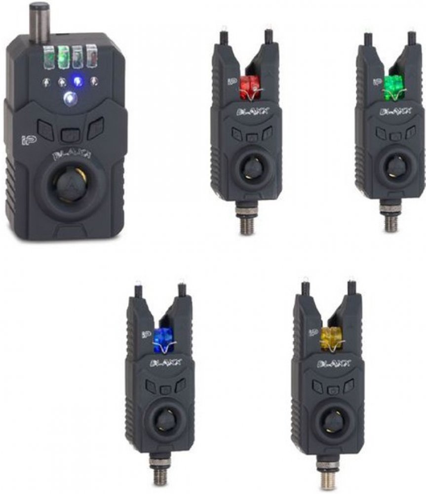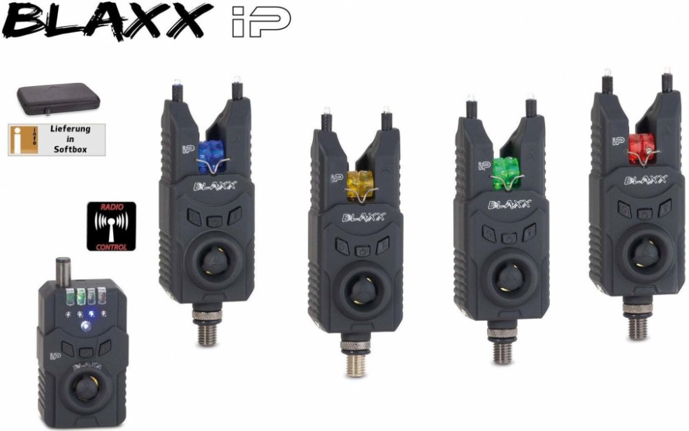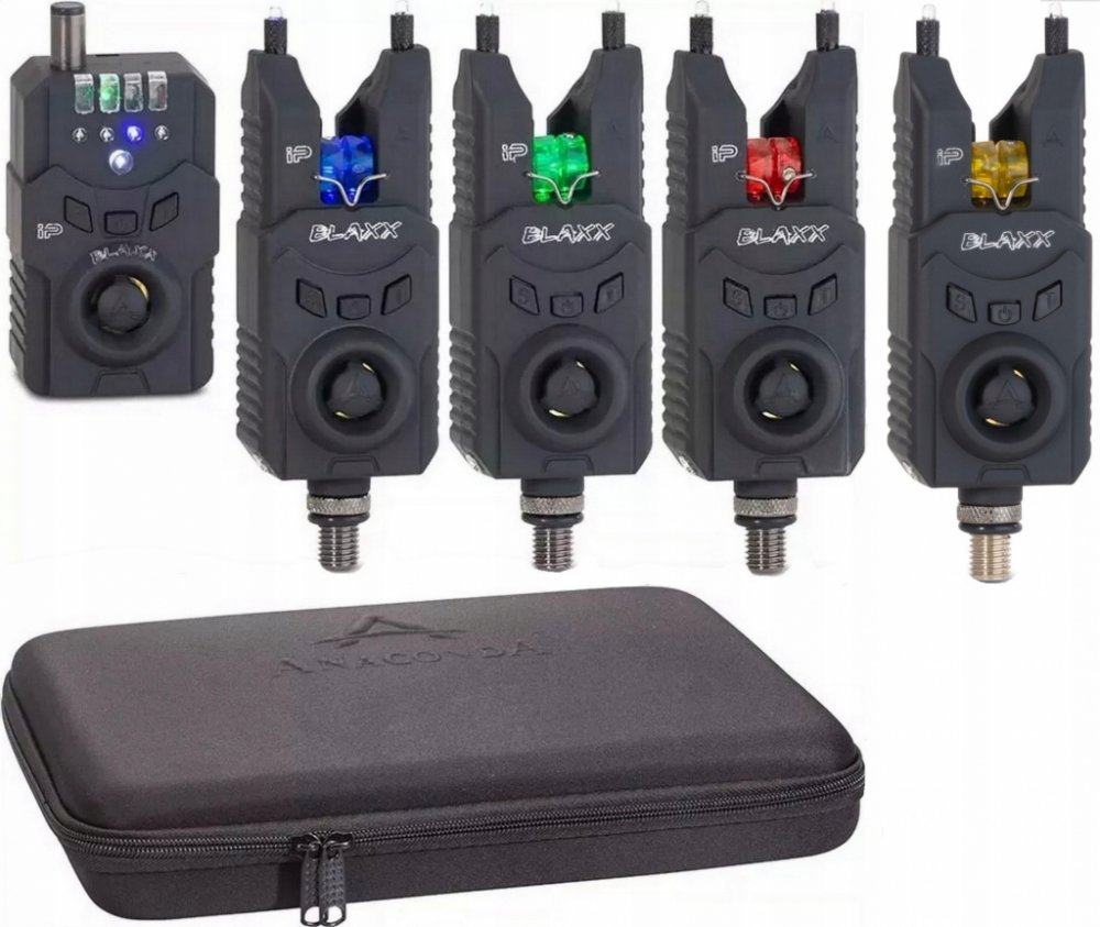 ANACONDA BLAXX iP 4+1 Set červená, zelená, modrá, žlutáAnaconda Blaxx IP je synonymem pro ultramoderní indikátor záběru, který je díky všem svým funkcím a vlastnostem na špičkové úrovni, což z něj činí absolutní "state of art" špičkové zařízení. Funkce indikátoru záběru:Informace o výrobku:úsporný obvodDosah cca 150 m za optimálních podmínekJednoduché ovládání díky technologii tlačíteksedmistupňová regulace hlasitosti + tichá funkce8 různých výškových stupňů8stupňové nastavení citlivostibarevný válec se při vytažení vlasce rozsvítíLED dioda pro záběr kapky, LED dioda pro záběr (každá v příslušné barvě válečku)voděodolný, nárazuvzdorný měkký dotykový krytNapájení pomocí 2 x 1,5V baterií AAA (nejsou součástí dodávky)připojení 2,5mm jack pro mechanické indikátory záběru Vlastnosti přijímače Blaxx IP:přenos 1:1jasná indikace záběru při pádu prostřednictvím 20sekundového rozsvícení červené LED diodybílá LED dioda bliká při záběru (20 sekund) a příslušná barva indikátoru aktivního záběru se rozsvítí na 20 sekund po záběruvýkonný reproduktorVibrační alarm bez zvuku s přenosem 1:17 různých nastavení hlasitosti + režim ticho/vibrace8 různých výšek tónuvoděodolné, nárazuvzdorné pouzdro s měkkým dotykovým povrchemNapájení pomocí 2 x 1,5V baterií AAA (nejsou součástí dodávky)