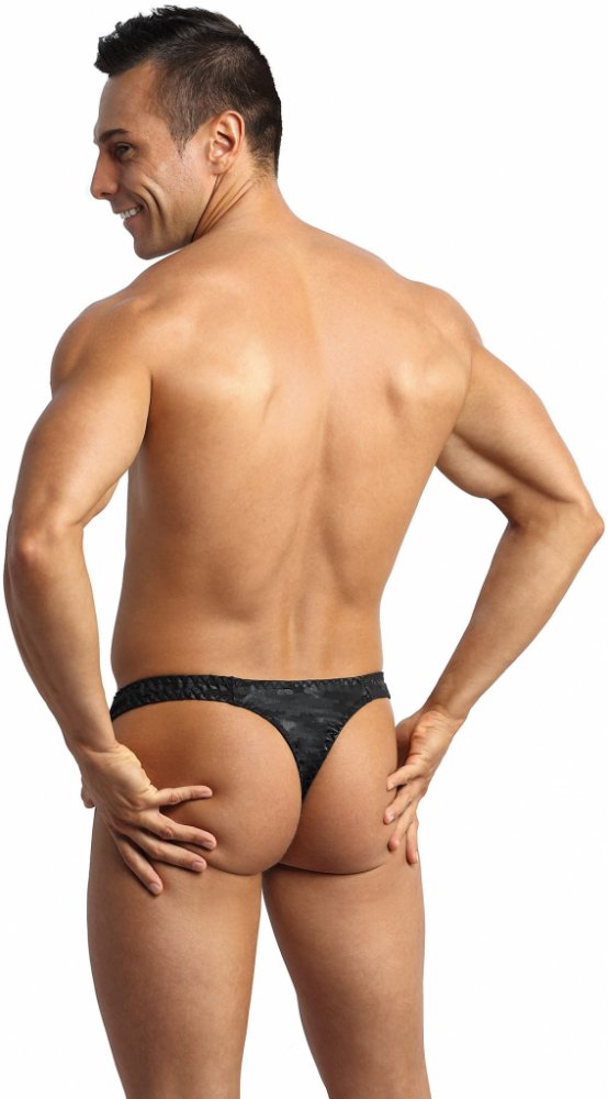 Myslíte si, že erotické spodní prádlo je jen pro ženy? To je mýtus a naše nabídka ho vyvrací! Kolekce pánského spodního prádla Anais vás ohromí svojí originalitou, příjemnými střihy a kvalitními materiály. Patří tam i tato nádherná tanga s černým maskáčovým vzorem. Jejich střih opticky prodlouží nohy a nízký pas zvýrazní boky, zatímco samotná tanga budou lákat pohled očí na váš penis. A co víc? Zadní strana nádherně zdůrazní půvab hýždí!