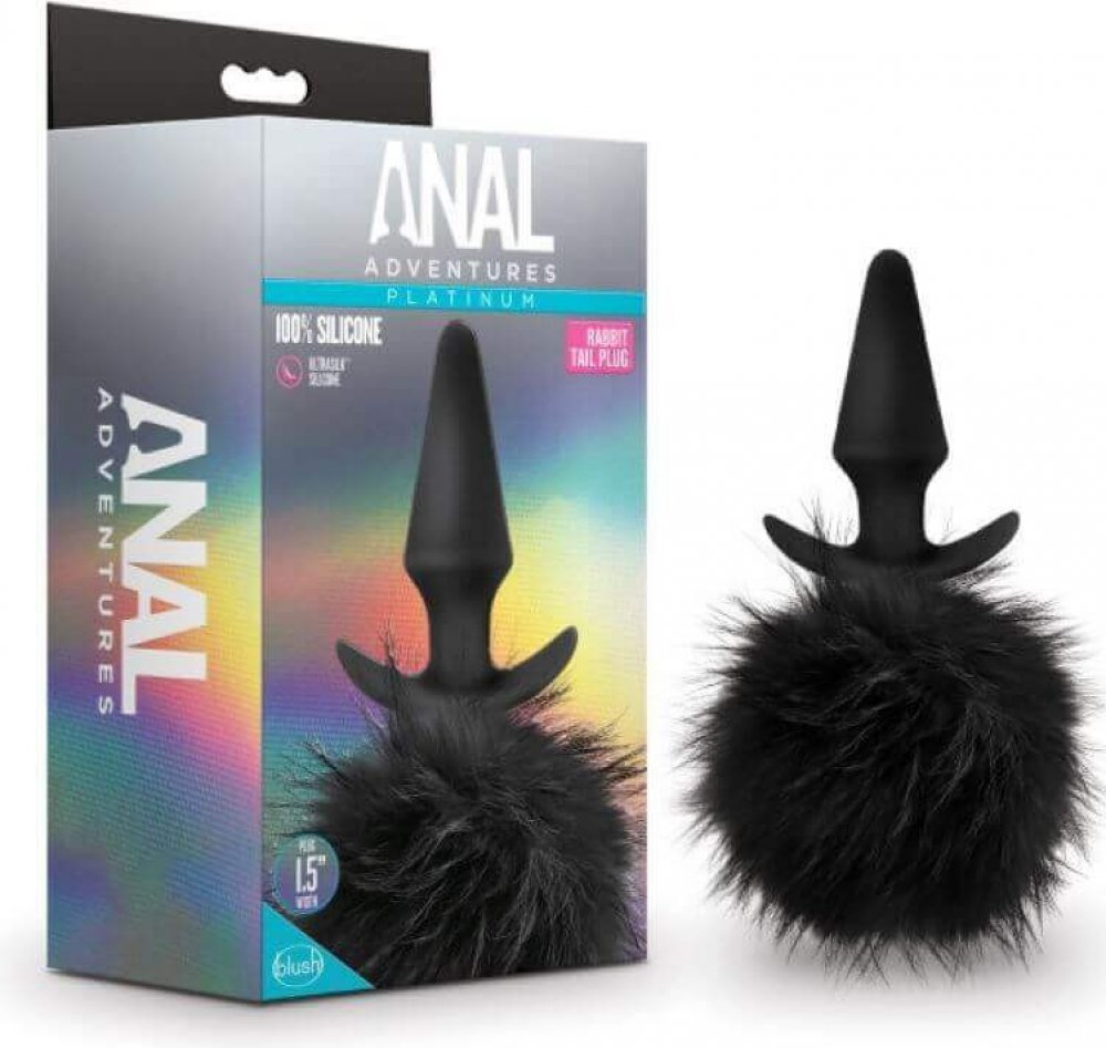 Roztomilý anální plug, který je ideální i na roleplay! Staň se sexy zajíčkem z Playboye, nebo se proměň v velikonočního králíka a předveď svůj roztomilý ocásek!Proč si ho zamiluješ?Příjemně tě naplní a postará se o dráždivé pocity uvnitřRoztomilý chlupatý králičí ocásek jako perfektní doplněk při hraní rolí!Kvalitní, pružný silikon - šetrný k pokožce, vhodný i pro citlivéAnatomický tvar do kužele - navržený pro anální použitíZúžené hrdlo pro pohodlnější nošeníŠiroká základna pro jistotu a bezpečí, neprokluzuje dovnitřUnisex produkt - užijí si ženy i mužiNeobsahuje žádné elektronické části - snadno se čistíNa co myslet:před i po použití důkladně omyjna lubrikaci používej pouze lubrikant na vodní bázikvůli většímu průměru nedoporučujeme úplným začátečníkům!Použití: Důkladně namaž svůj zadeček i anální plug lubrikantem na vodní bázi. Až budeš připravený/á, opatrně zasuň plug do análního otvoru, špičkou směrem vzhůru k sobě. Můžeš si hrát s pohyby dovnitř a ven nebo s krouživými pohyby - a roleplay zábava může začít! Balení obsahuje: 1× anální plug s králičím ocáskemSpecifikace a vlastnosti:pružný silikonsametově hebký na dotekanatomický, kuželovitý tvarširoká základnazúžené hrdlo pro pohodlné nošeníroztomilý králičí ocásekvelikost pro středně pokročilé a pokročilécelková délka (s ocáskem): cca 18,5 cmdélka zasunutelné části (po základnu): 8,9 cmmin. průměr: 1,3 cm (na špičce)průměr ocásku: cca 8,5-9 cmmax. průměr: 3,8 cmhmotnost: 220 gzákladna: 7,5 × 2,5 cmbarva: černámateriál: umělá kožešina, ABS, silikon (bez ftalátů, dle EU norem)Doporučení k čištění: Důkladně umyj jemným mýdlem a vlažnou vodou, opláchni a nech volně uschnout. Doporučujeme použít speciální čistící prostředek (06302500000) - lze objednat zvlášť. Čistící prostředek nanášej pouze na plug, ocásek oplachuj šetrně rukou.Podívej se na video s představením Anal Adventures Platinum - análního plug s králičím ocáskem (černý)!