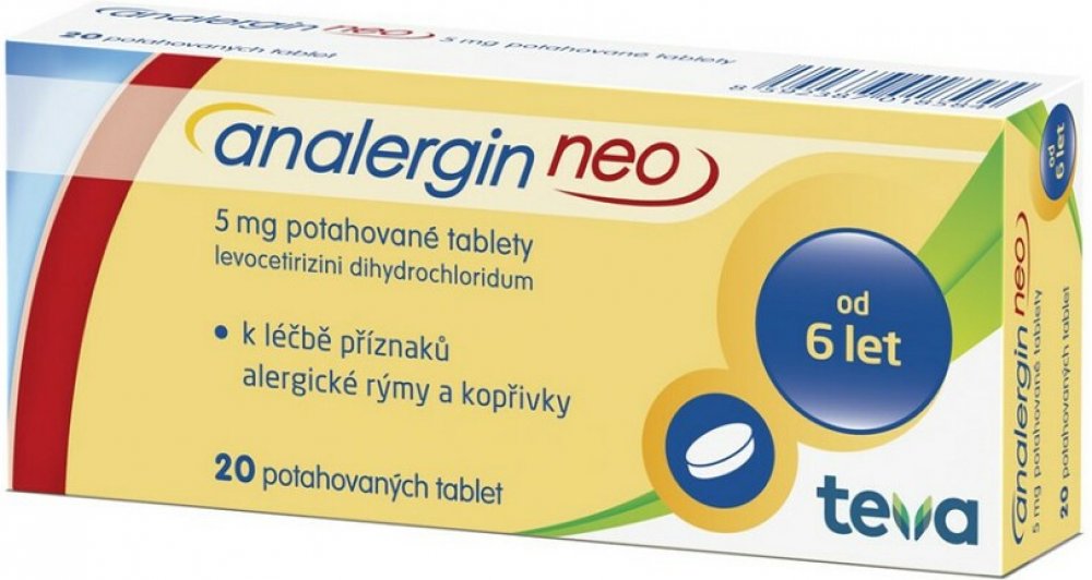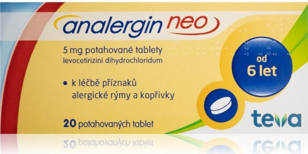 Analergin Neo 5 mg patří mezi léky na alergii. Přípravek Analergin Neo 5 mg se používá k léčbě příznaků (symptomů) spojených s alergickými stavy, jako jsou senná rýma, perzistující (přetrvávající) alergická rýma a chronická kopřivka.