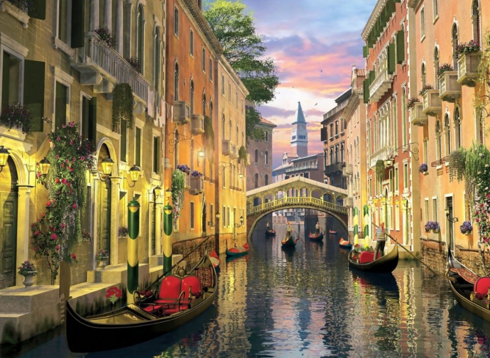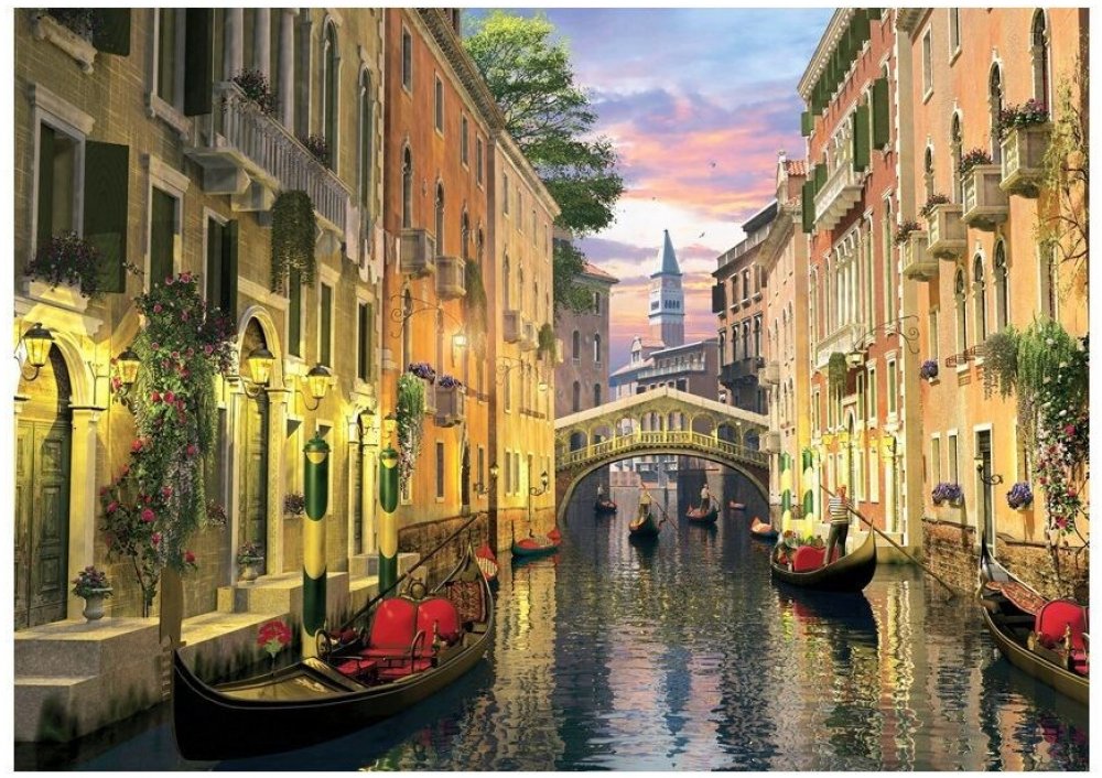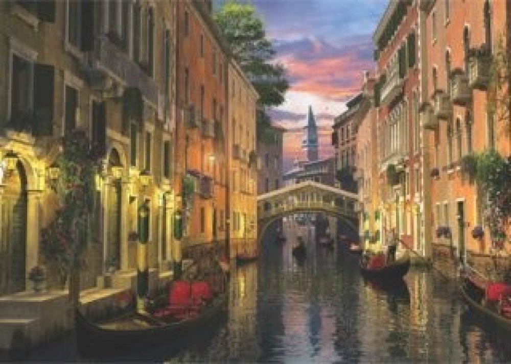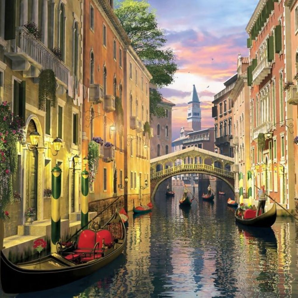 Puzzle od firmy Anatolian v obdélníkovém tvaru s krásným motivem obrazu Benátky při soumraku, autorem je britský umělec Dominic Davison.