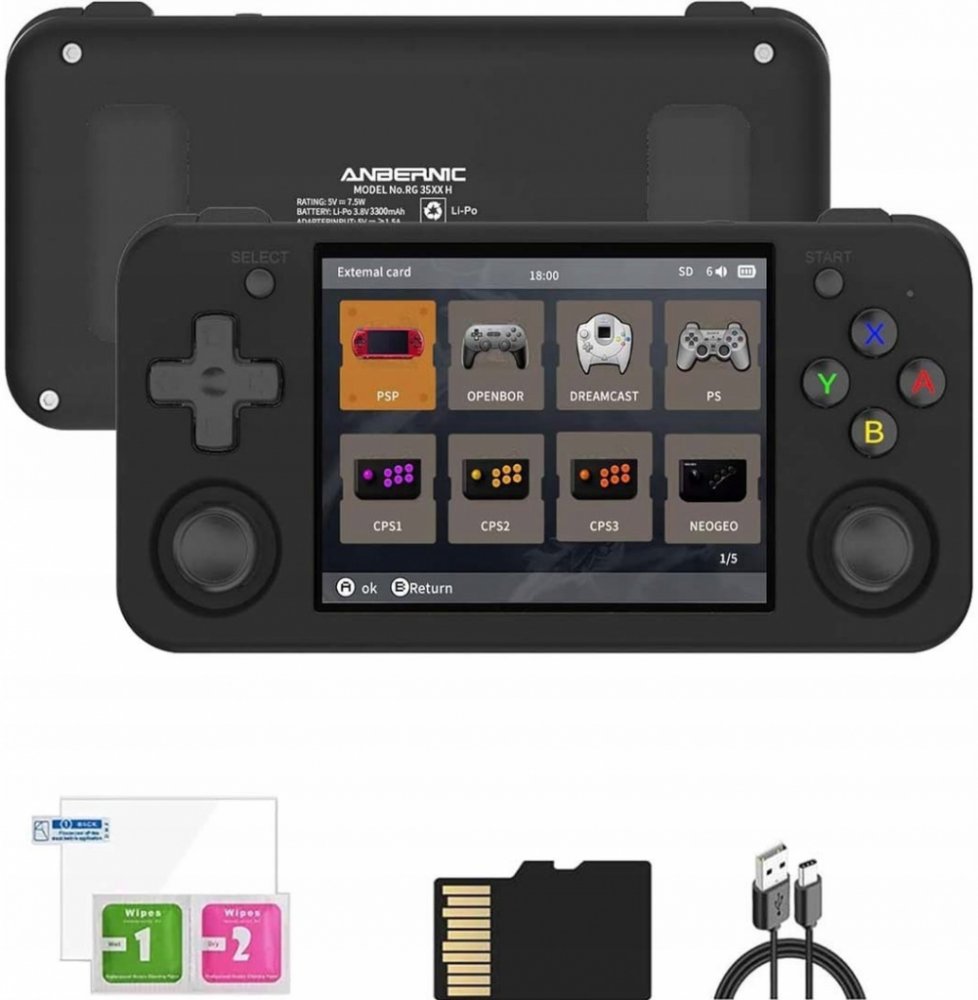 Konzole Anbernic RG35XX H, USB-C kabel, MicroSD 64 GB, Ochranná folie na displej