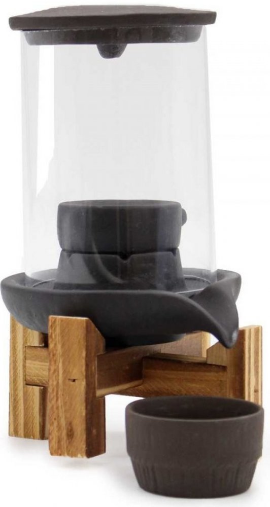 Vícedílný stojan - fontána na vonné kužely s efektem tekoucího dýmu v provedení Dračí vodopád, výška 22cm. Kužel v horní části fontány vydává při hoření speciální dým, který je těžší než vzduch a prochází otvory ve fontáně, čímž vytváří kaskádovitě padající efekt tekutého dýmu. Ideální pro vytvoření pohodové atmosféry a voňavého osvěžení Vašeho domova, ale i jako krásná a efektní dekorace. Část fontány je uzavřena v plastovém tubusu, čím dochází k dalšímu zajímavému efektu proudění dýmu, část je pak mimo tubus (sběrná nádoba). Tubus současně zabraňuje rozfoukávání dýmu například průvanem. Je nutno použít speciální vonné kužely ze série Tekoucí dým. Výška: 17 cm. Průměr: max. 13 cm. Baleno v ekologickém kartonovém obalu (krabičce) a polystyrenu. Bezpečnostní pokyny a návod k použití Vonný kužel zapalte v nakloněné poloze nejlépe nad svíčkou, případně zápalkami/zapalovačem. Držte v ohni špičku asi 10-20 vteřin a pomalu kuželem otáčejte. Následně mírně rozfoukejte a vložte do otvoru ve