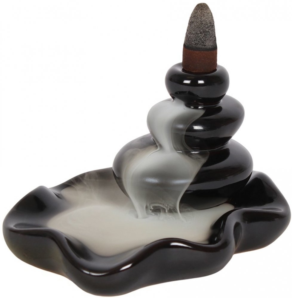 Ancient Wisdom Stojan na vonné kužely Tekoucí kouř Velké kameny v jezírku