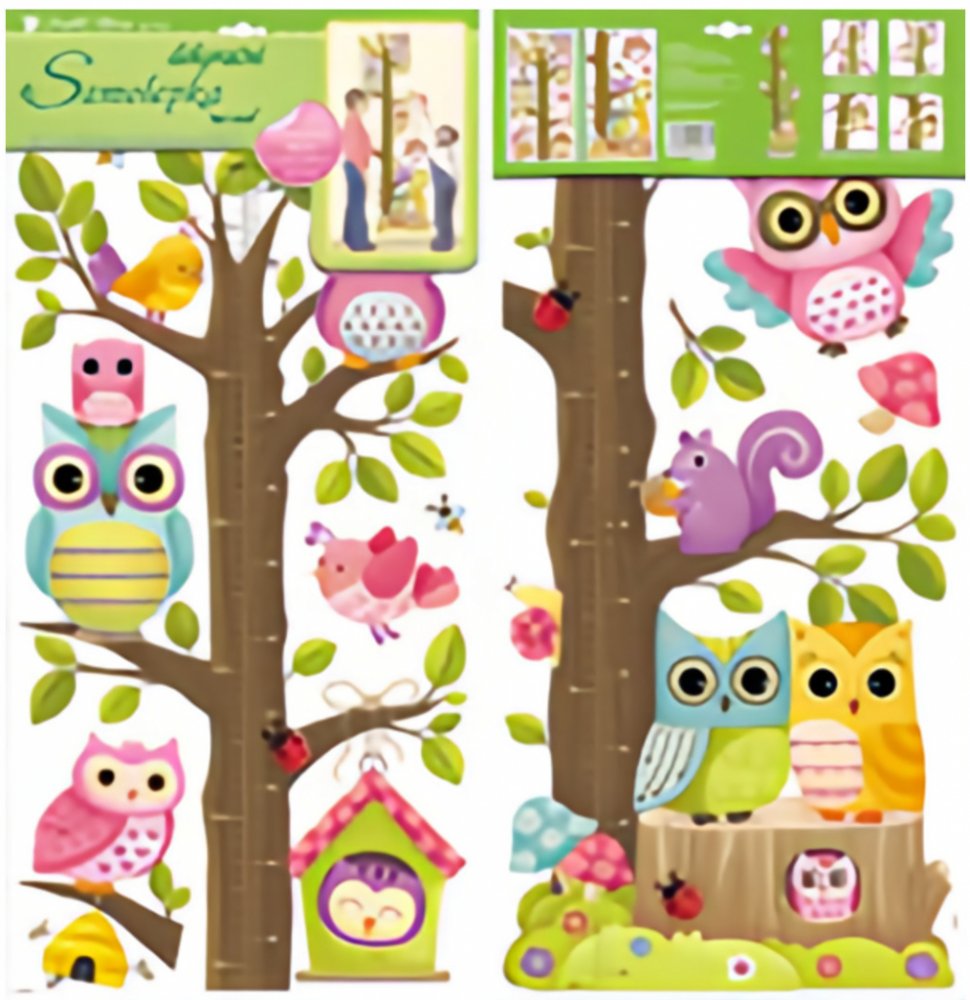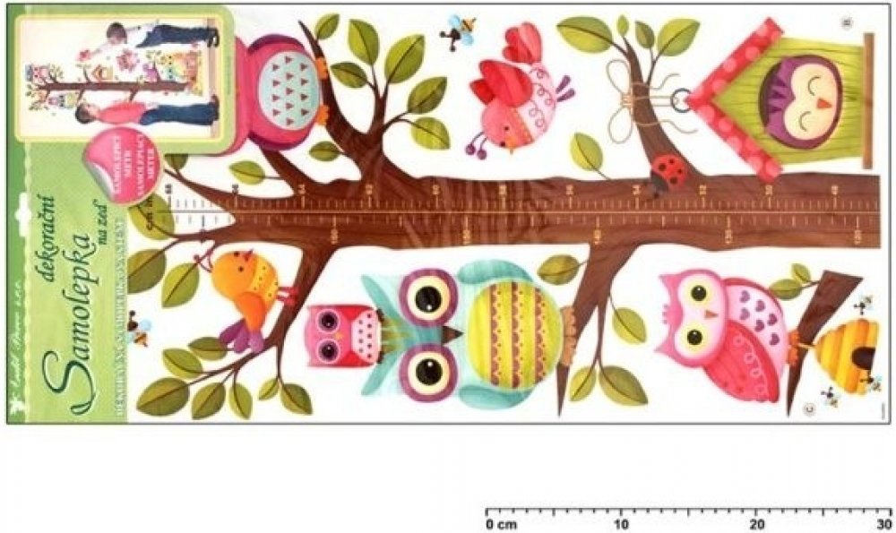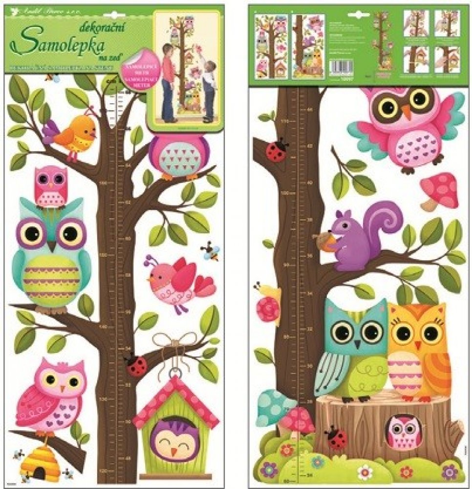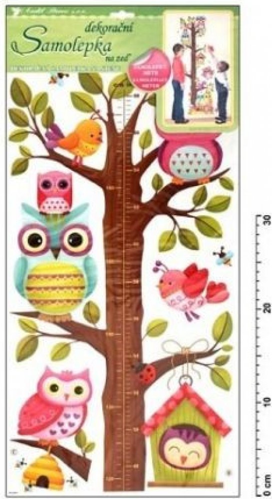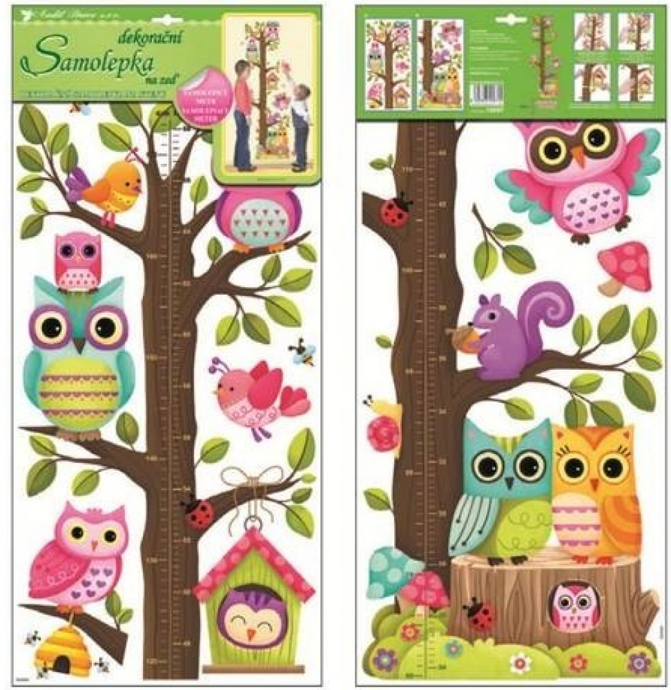 Samolepka na zeď - metr - strom se sovami - 10097.