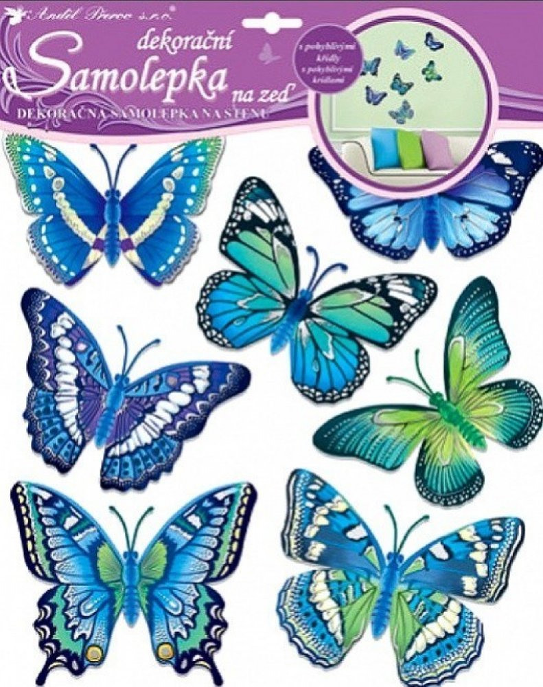 3D Samolepky na zeď - motýli modří - určená na stěny, dveře, okna, zrcadla a jiné hladké plochy. Tato samolepka na zeď v mžiku oživí Váš obývací pokoj, koupelnu, chodbu, dětský pokoj či ložnici.