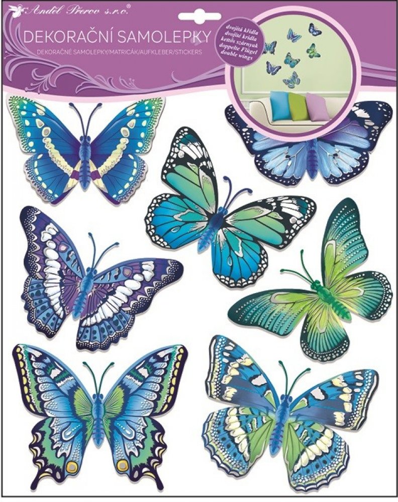 Anděl 10163 Samolepky na zeď motýli modří 38x31 cm
