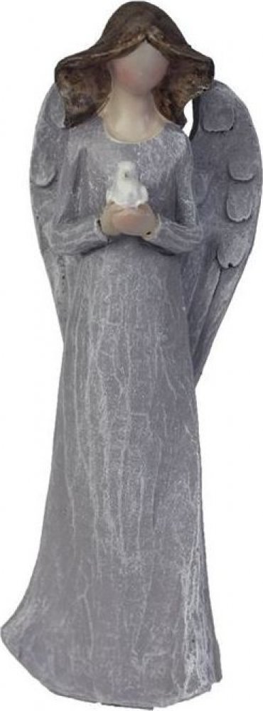 Dekorační anděl. Rozměry : 6,5 x 4 cm, výška 15 cm. Barva : šedá. Materiál : polyresin.