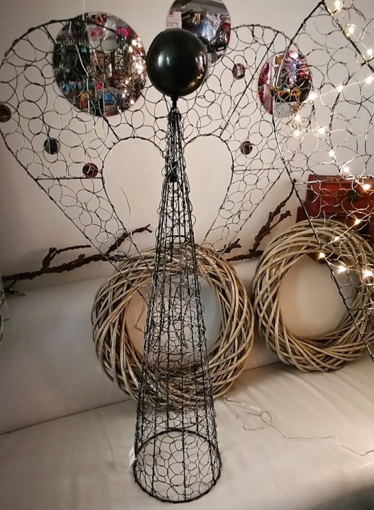 Vysoký kovový anděl s krásnými křídly. Ideální vánoční dekorace do většího a moderního interiéru. Výška 100 cm.
