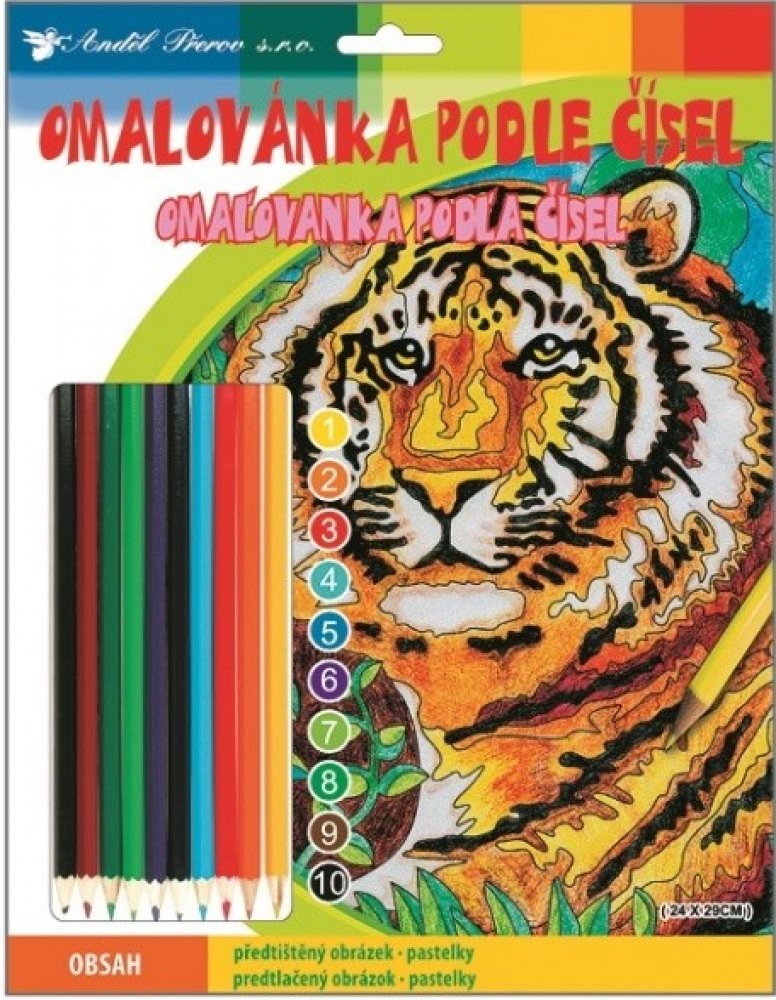 V tomto balení na vaše děti čeká omalovánka podle čísel s 10ti pastelkami - předtištěný obrázek lva. Děti vymalují obrázek podle čísel a předlohy.
