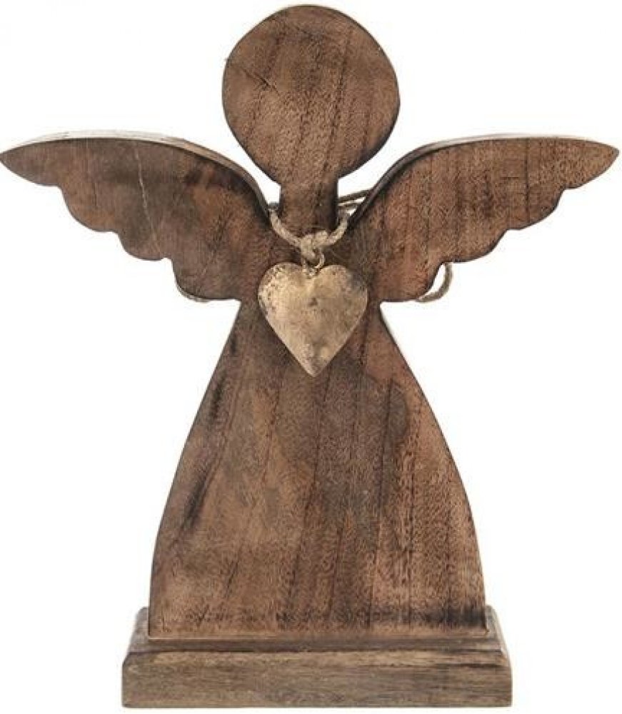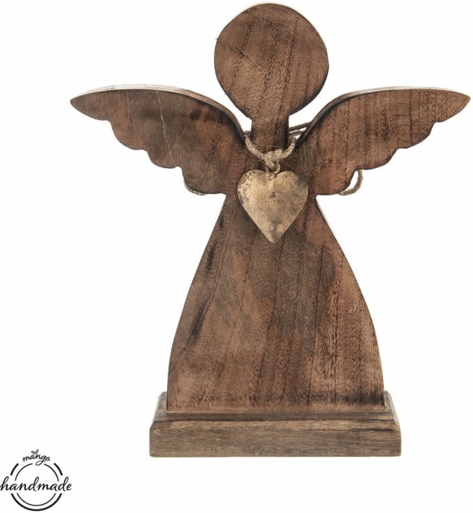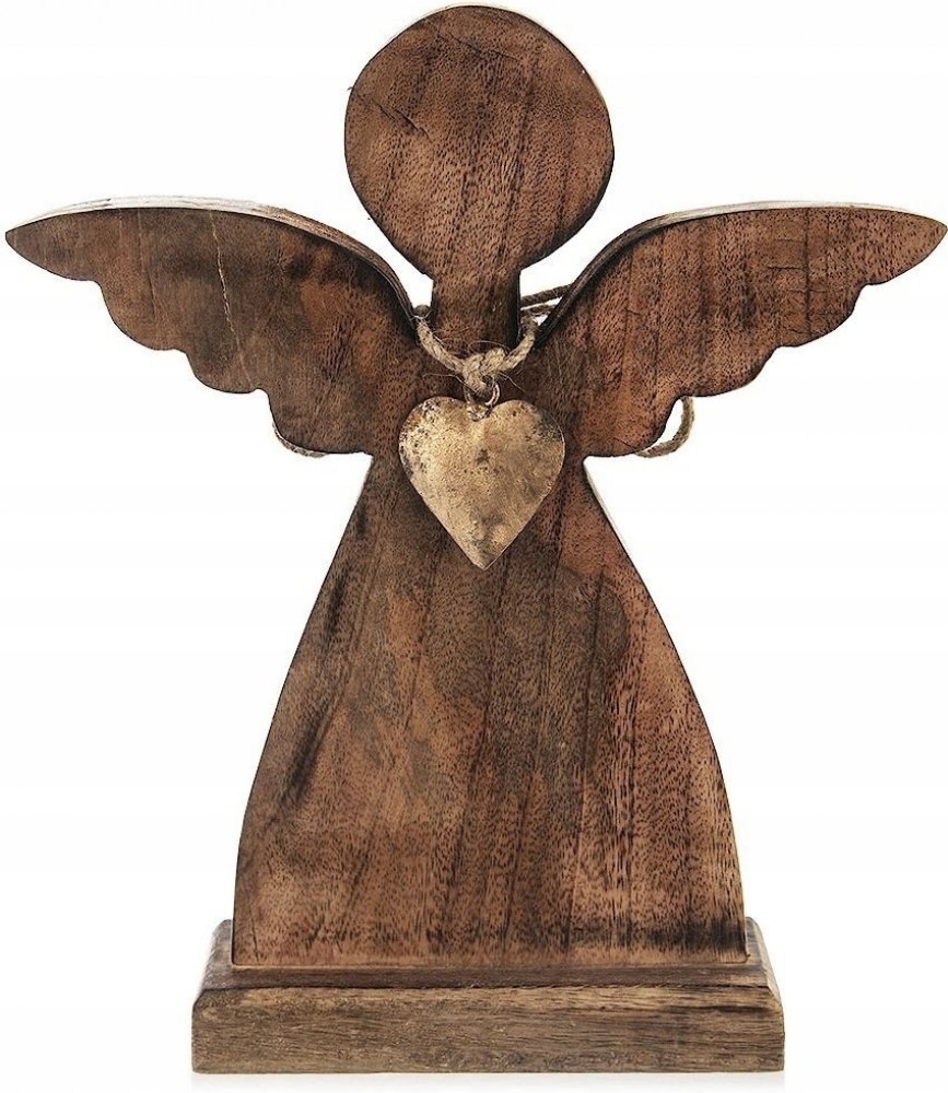 Anděl z mangového dřeva ozdobený kovovým srdcem je krásnou dekorací, která zútulní kteroukoliv místnost vašeho domova. Lze ho užívat jako celoroční dekoraci, která vytvoří vyjímečnou atmosféru. S výškou 30,5 cm je nepřehlédnutelným prvkem. Ozdobí stůl, poličku, komodu či parapet. Vhodný i jako dárek. Snadno se udržuje vlhkým hadříkem, nesmí se namáčet. Materiál: mangové dřevo, kov, provázek Rozm...
