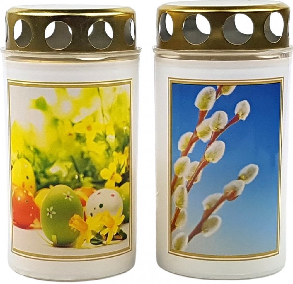 svíčka hřbit.100g s víčkem, bílá - VELIKONOCE, 32hod.Cena produktu je vždy za 1ks / 1 balení, pokud není v názvu produktu uvedeno jinak.V případě zájmu o konkrétní barvu/dekor - prosím uveďte tento požadavek do poznámky ve 3.kroku objednávky - dodací údaje (zadat poznámku) - my se vám pokusím následně vyjít vstříc. Pokud nebude v našich silách doručit vámi požadovaný dekor či barvu - budeme vás ko...