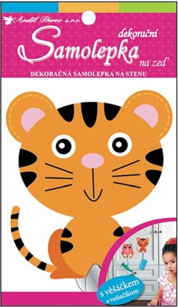 Anděl Samolepka na zeď tygřík s věšáčkem 13 x 10 cm