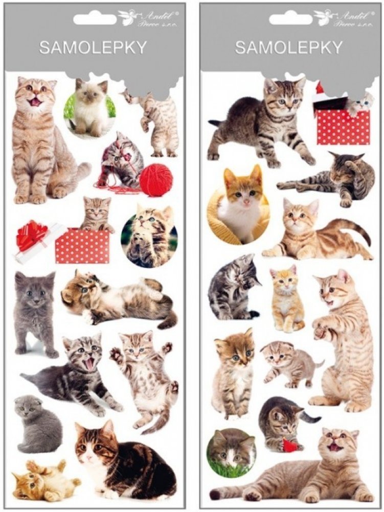 Samolepky - kočky 1250 Samolepky s motivy nejrůznějších koček. Motivy mohou být v průběhu roku vyprodány nebo se mohou měnit. Rozměr: 34,5 x 12,5 cm