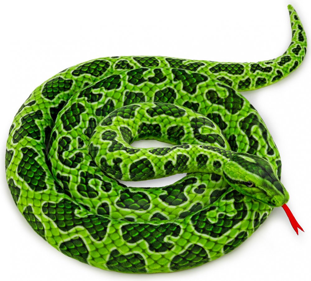 Plyšový had o délce 3 metry vyplazuje jazyk a sleduje vás korálkovýma černýma očima, která jsou k nerozeznání od těch skutečných. Propracovaná kresba napodobuje vzor na těle krajty pestré v její zelené variantě. Jen při pohlazení se vaše ruka místo chladných šupin dotkne sametové srsti, přeci jen je to plyšák. Povrh našeho velkého plyšového hada je snadno omyvatelný, stačí tělo otřít vlhkým hadřík...