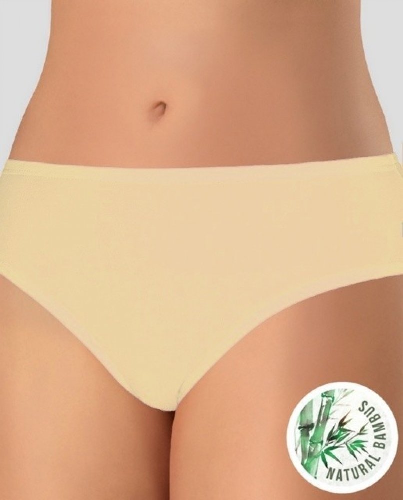 Dámské kalhotky klasického střihu. Kalhotky jsou vyrobeny z elastické směsi bavlny a viskózy (bambusu), který dodává tkanině jemný a velmi příjemný pocit při nošení. Materiál obsahující viskózu (bambus) je vhodný pro osoby s citlivou pokožkou. V pase a kolem nohou je zašitá pruženka.
