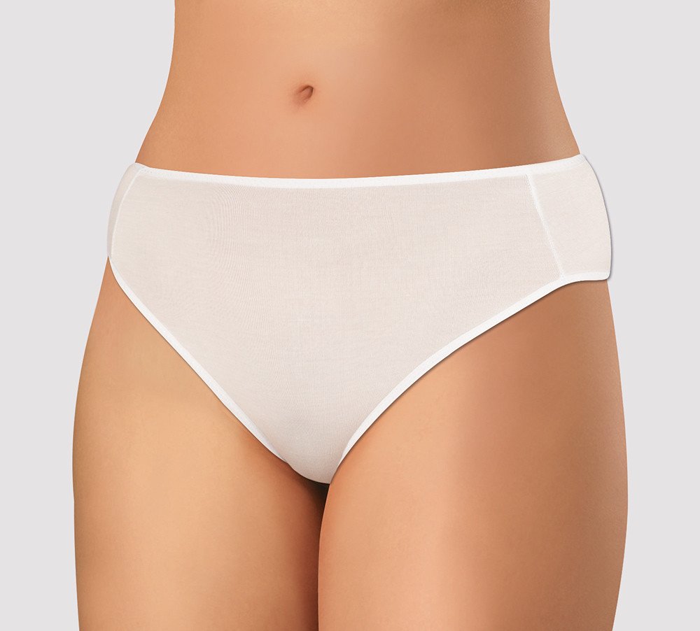 Dámské kalhotky klasického střihu. Kalhotky jsou vyrobeny z vysoce kvalitní směsi obzvláště jemného přírodního materiálu Micromodal a elastanu pro vyšší pružnost tkaniny. Materiál vyniká jemností a komfortem při nošení. Kolem pasu a nohou je zašitá pruženka. Bavlněný klínek.