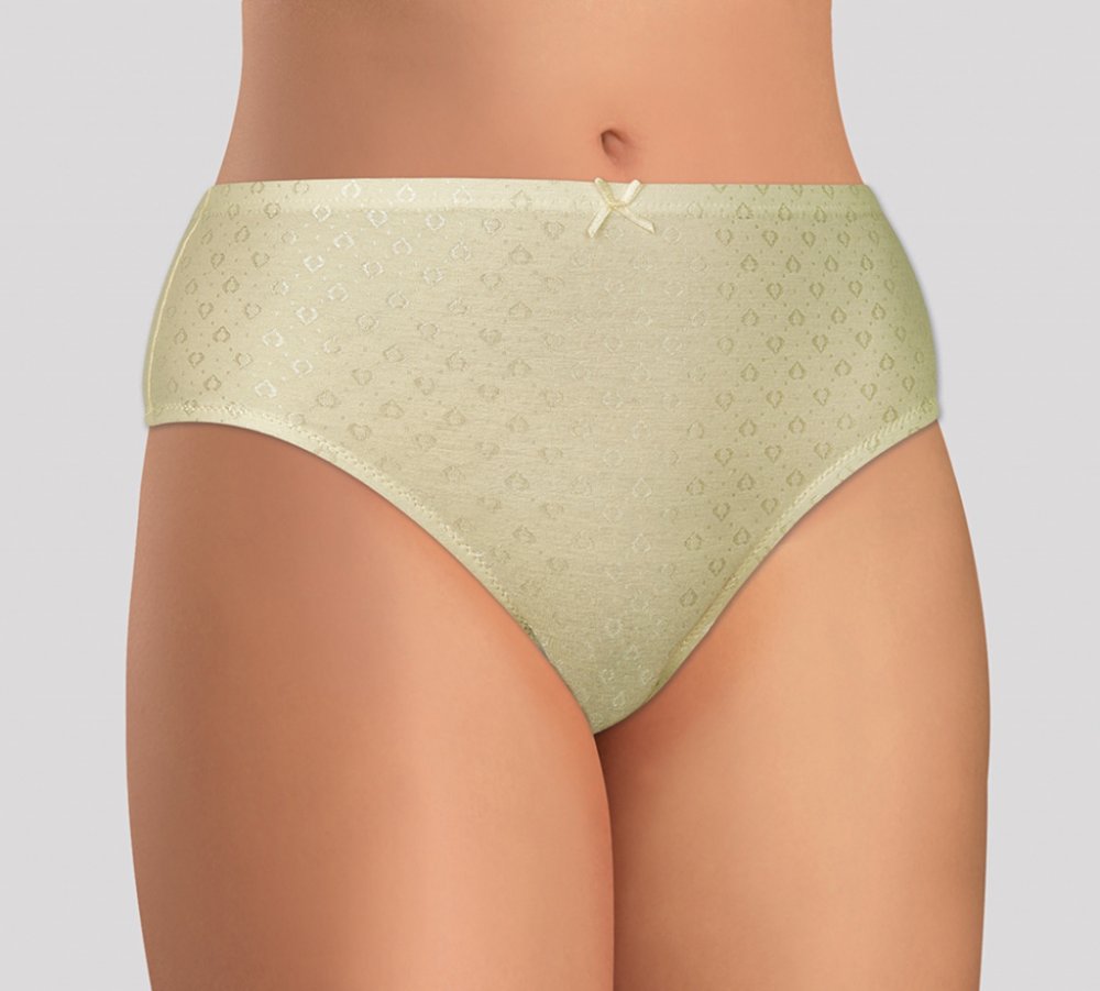 Dámské kalhotky klasického střihu. Kalhotky jsou vyrobeny z velmi kvalitní elastické bavlny s příměsí vlákna Tactel. Díky tomu jsou velice příjemné na dotek a krásně prodyšné. Díky svému materiálovému složení se perfektně přizpůsobí postavě a je drží tvar i po mnohonásobném praní. Pro maximální pohodlí mají bavlněný klínek.