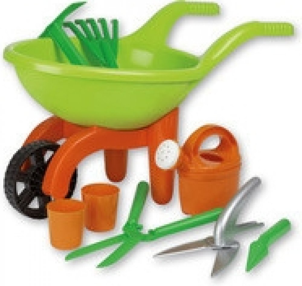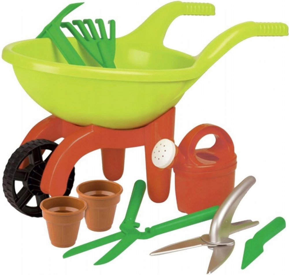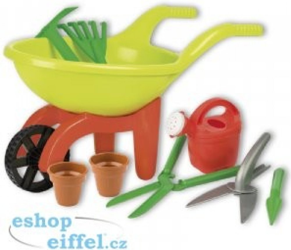 9dílná sada s kolečkem a doplňky pro malého zahradníka.