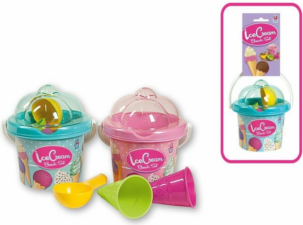 Obsahuje: Kyblík s víkem ve tvaru zmrzlinového poháru, kopečkovač na zmrzlinu a 2 zmrzlinové kornoutky.