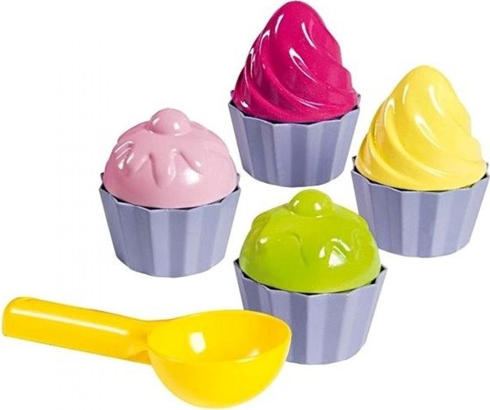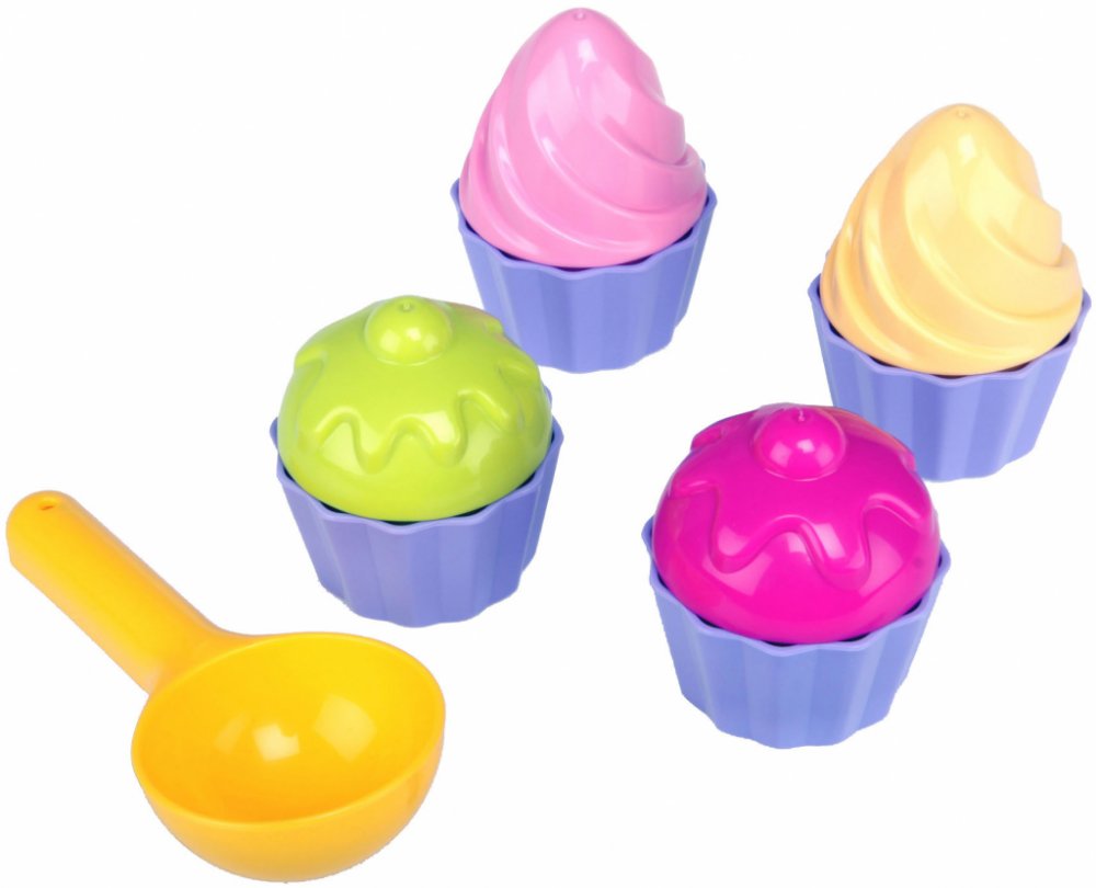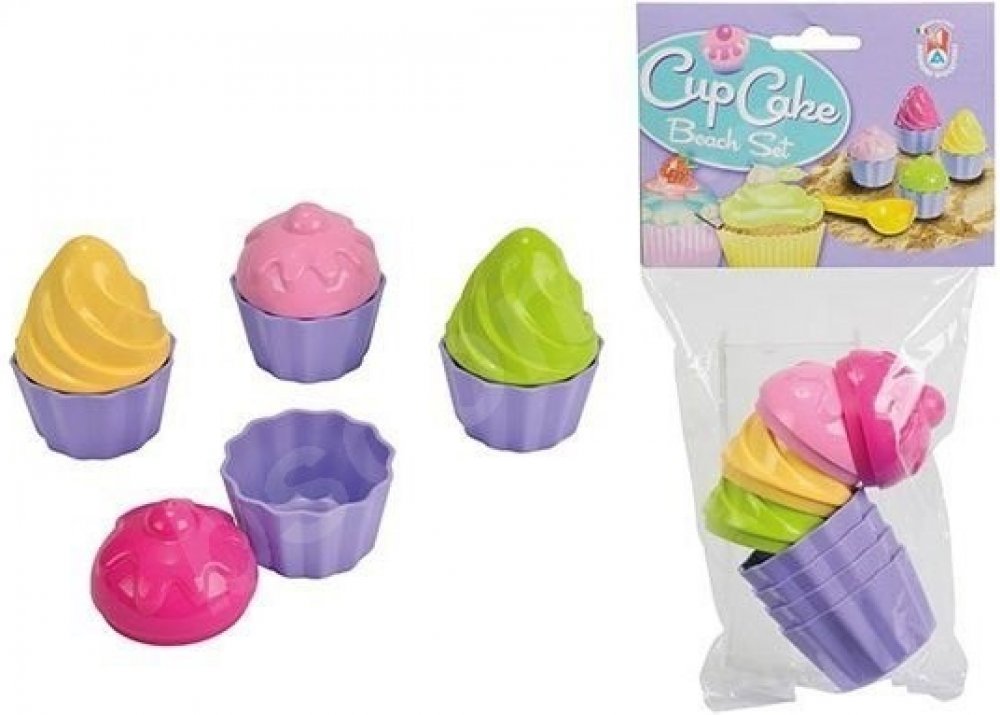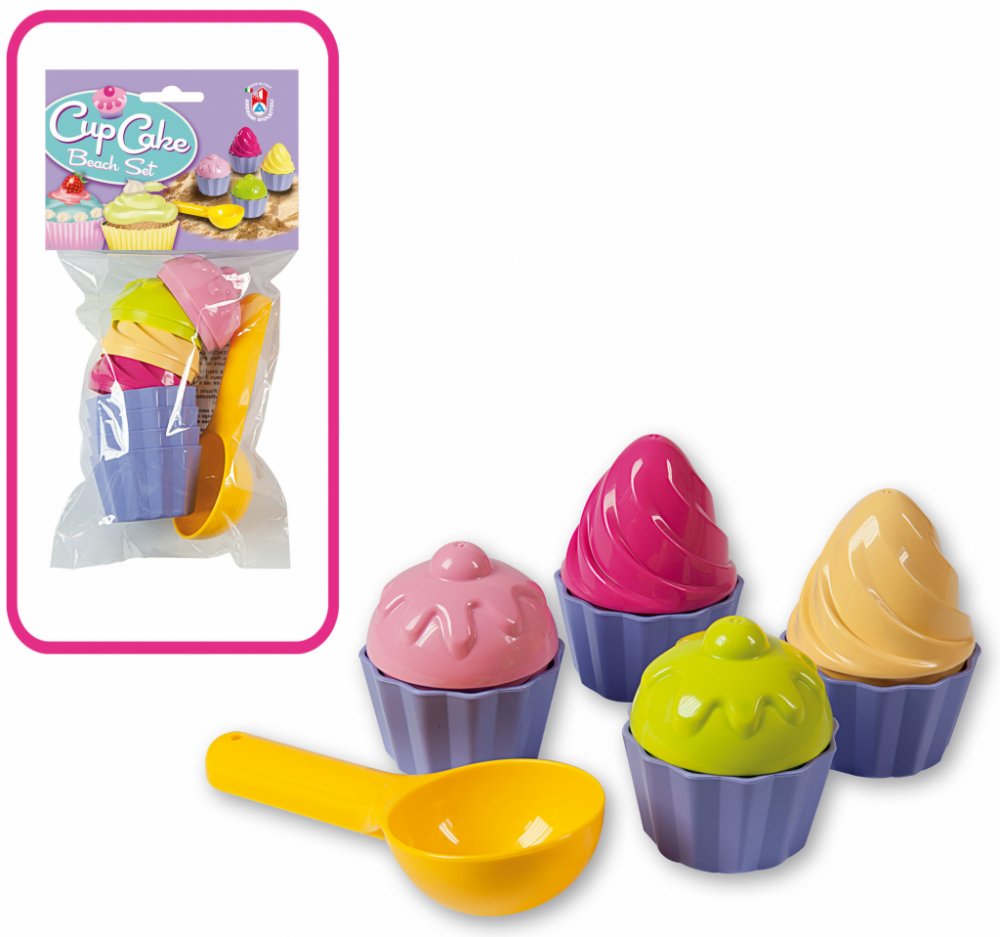 9dílná sada tvořítek na písek - dortíky. Vyrobeno z kvalitních plastů v Itálii. Obsahuje: Lopatku na zmrzlinu a 8 tvořítek na dortíky.