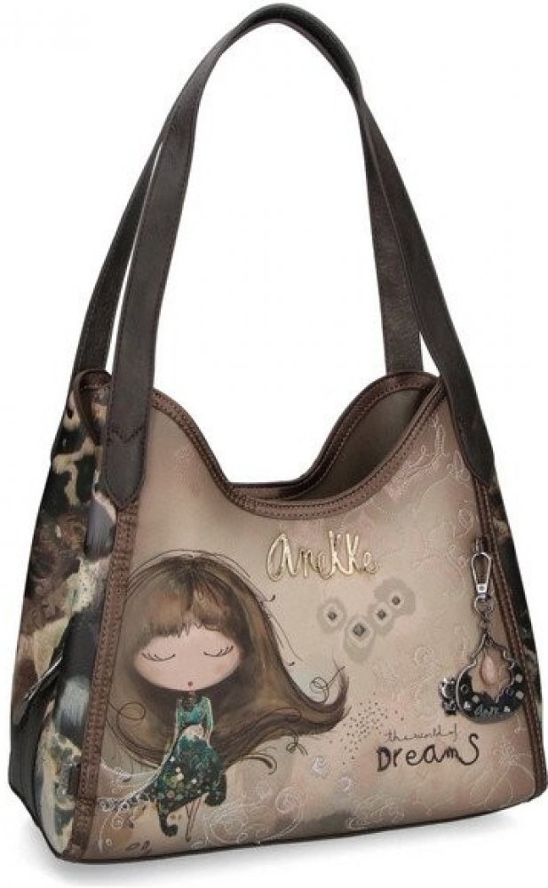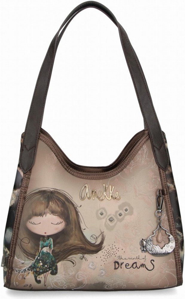 Kabelka má dvě ucha do ruky nebo na rameno a dlouhý popruh na rameno. Na zadní straně je kapsa na zip. Kabelka má tři komory. Hlavní komora má zapínání na zip, přední a zadní komory mají zapínání na magnet. Uvnitř kabelky je kapsa na zip a otevřená kapsa. U kabelky je ozdobný přívěšek. Kabelka je balená v ochranném obalu.Značka Anekke je charakteristická svým precizním zpracováním a překrásným designem, který vás zaujme a okouzlí. Velmi originální a poetické kabelky a batohy Anekke budou dokonalým doplňkem pro denní nošení nebo pro večerní příležitosti. Kouzlo a romantika, to je svět Anekke.Rozměry: délka 32 cm, šířka 14 cm, výška 22 cmBarva: šedohnědáMateriál: 100% polyuretan, podšívka 100% PEPro čištění nedoporučujeme používat tekutá čistidla kvůli možnému zabarvení materiálu. Výrobek otírejte měkkým, bezbarvým, navlhčeným hadříkem.