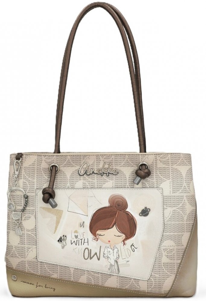 Kabelka má dvě ucha na rameno. Na zadní straně je kapsa na zip. Kabelka má zapínání na zip. Vnitřní prostor kabelky je rozdělený přepážkou na dvě komory. Uvnitř kabelky je kapsa na zip a dvě otevřené kapsy. Kabelka je balená v ochranném obalu.Značka Anekke je charakteristická svým precizním zpracováním a překrásným designem, který vás zaujme a okouzlí. Velmi originální a poetické kabelky a batohy Anekke budou dokonalým doplňkem pro denní nošení nebo pro večerní příležitosti. Kouzlo a romantika, to je svět Anekke.Rozměry: délka 36 - 36 cm, šířka 10 cm, výška 26 cmBarva: světle šedá / hnědáMateriál: umělá kůže (PU), podšívka 100% polyesterPro čištění nedoporučujeme používat tekutá čistidla kvůli možnému zabarvení materiálu. Výrobek otírejte měkkým, bezbarvým, navlhčeným hadříkem.