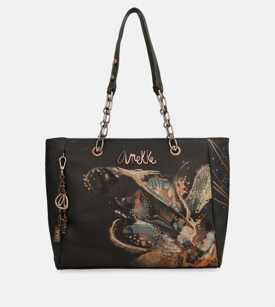 Dámská jednokomorová kabelka na rameno, vyrobená z kvalitní syntetiky a textilní podšívky. Hlavní komora a zadní kapsa uzavíratelná na zip. Kabelka je zdobena krásnými propracovanými detaily, které jsou značce Anekke vlastní. Každý produkt firmy Anekke je jedinečně zpracován pomocí ručních výšivek, štrasových kamínků, pentliček, kapes a mnoha dalších důvtipných maličkostí.
