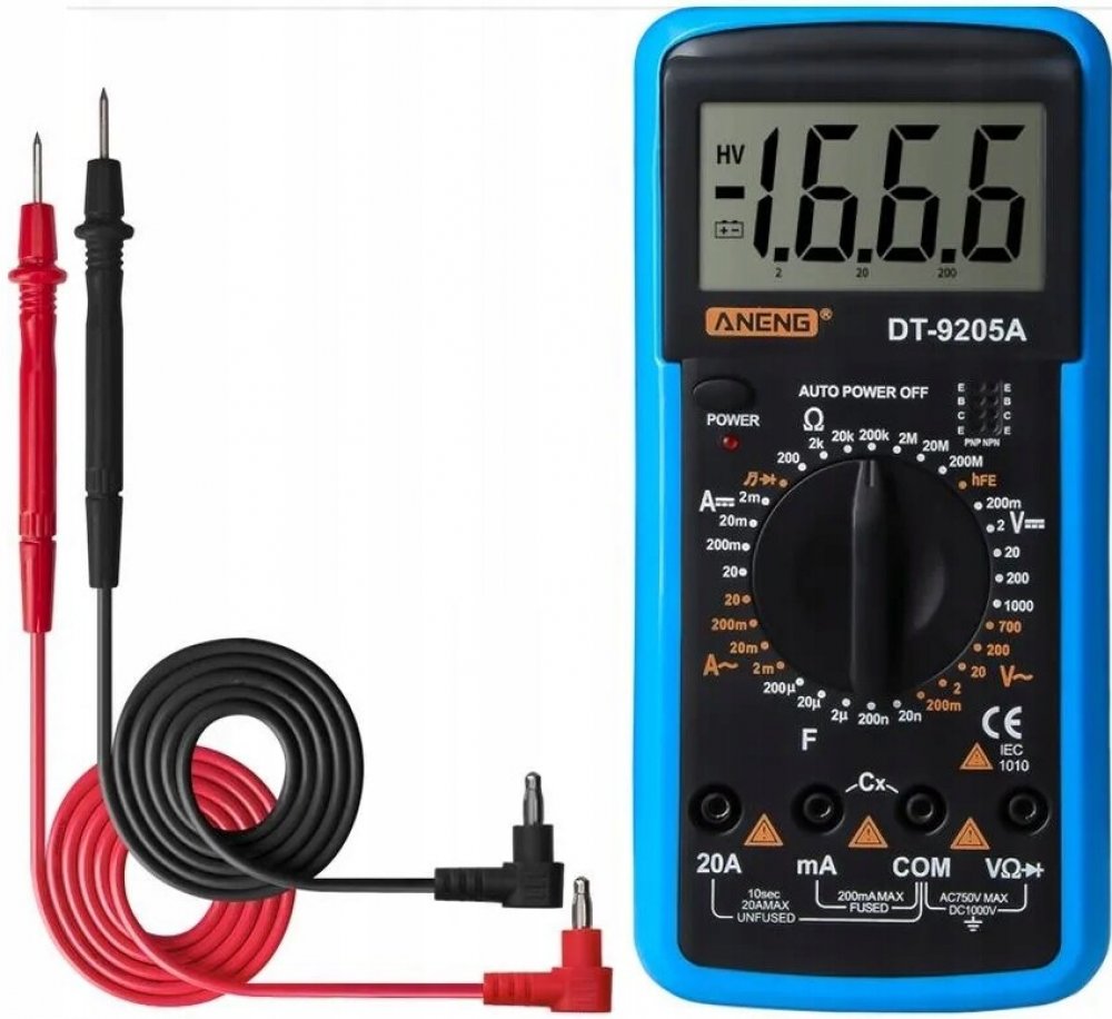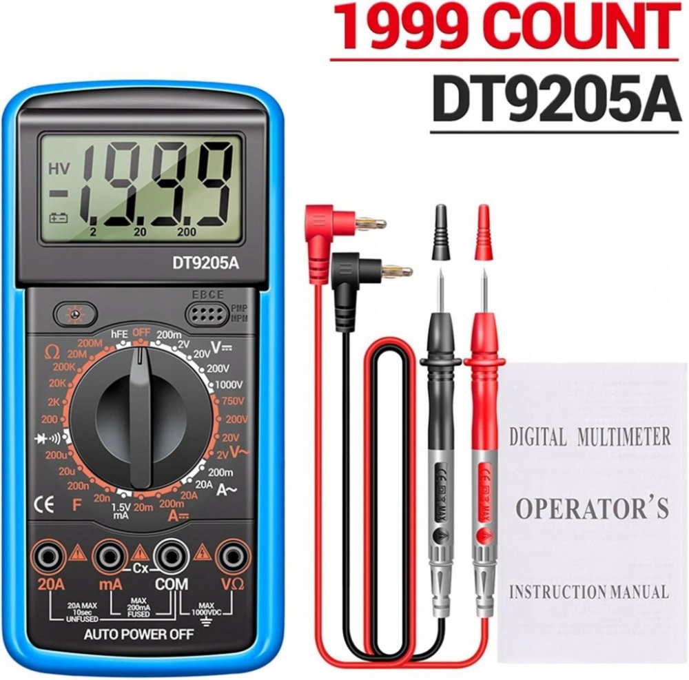 Měřič Digitální multimetrVoltmetr AmpérmetrANENG 9205AZákladní funkce: