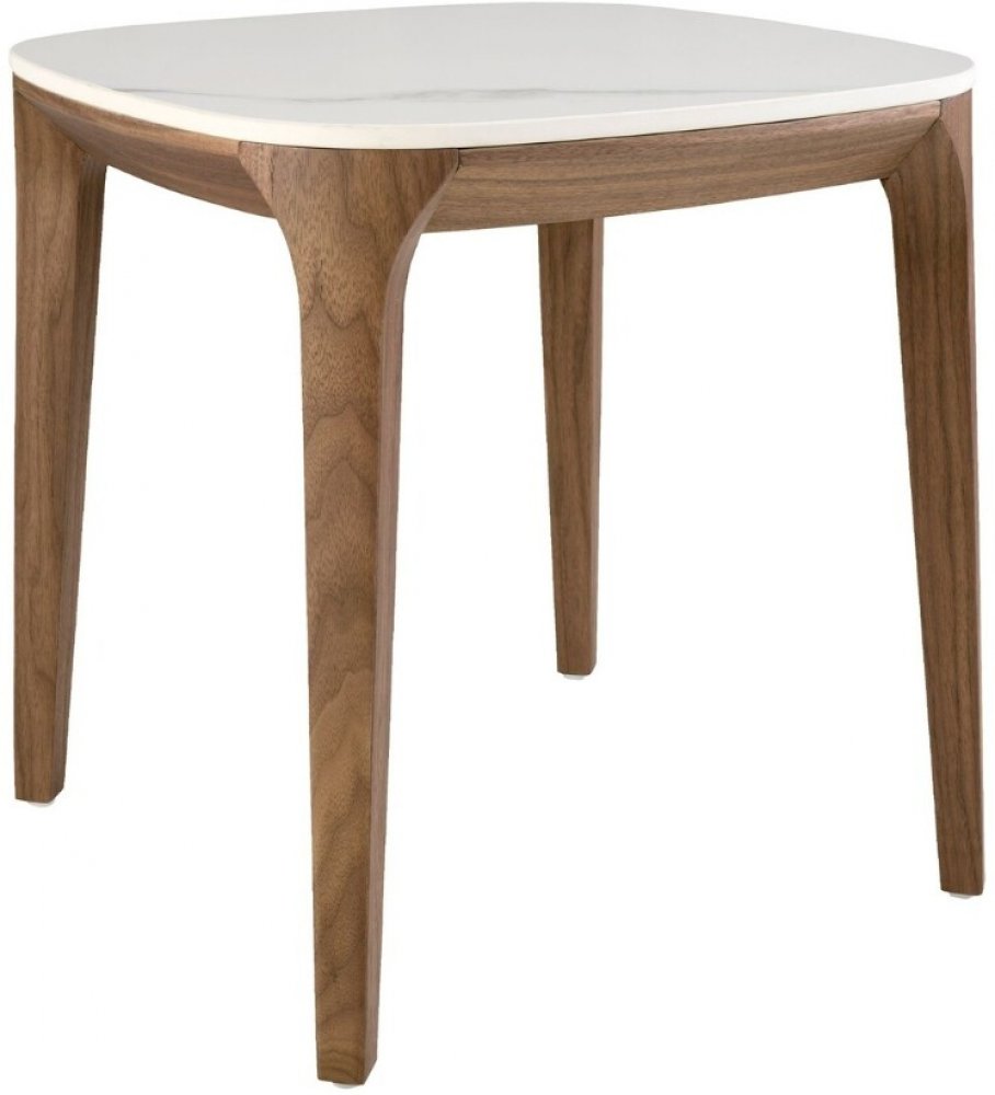 Odkládací stolek Angel Cerdá přinese do vašeho prostoru jemný kontrast přírodních materiálů a moderní elegance. Jeho čtvercová porcelánová deska s jemným žilkováním a přírodní ořechová podnož působí vzdušně a stylově. Skvěle se uplatní vedle pohovky, postele nebo jako dekorativní kousek pro vystavení květin a designových doplňků. Bílý mramorový efekt dodá interiéru svěžest a lehkost.