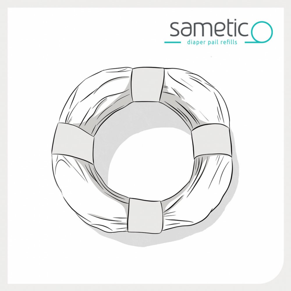 Praktické balení Fólie Sametic do kazet košů na pleny. Vložíte do prázdné kazety, přestřihnete papírové pásky a kazeta je připravena k použití. Gratulujeme, s každým naplněním kazety totiž šetříte vaše peníze!