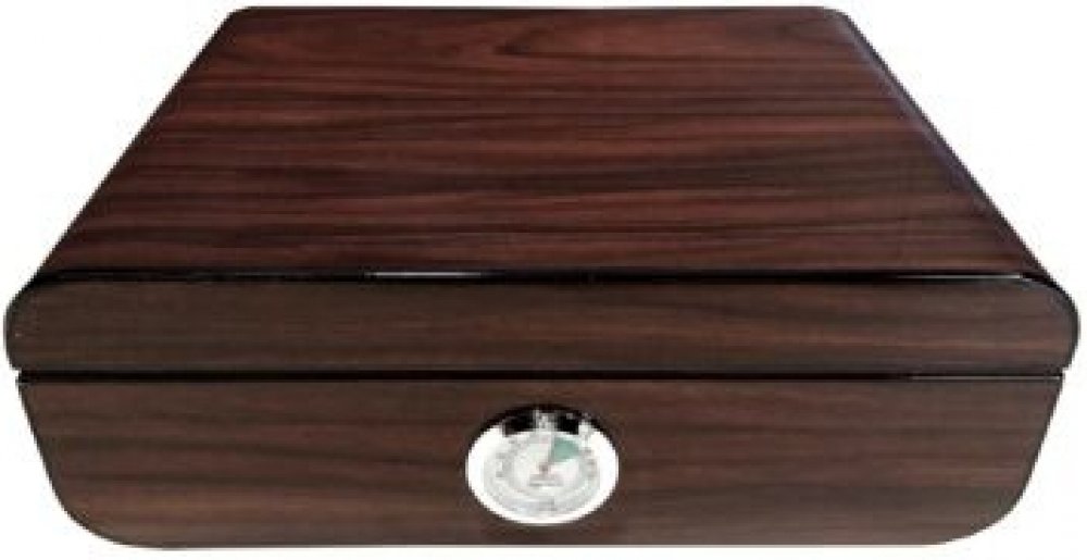 Stolní humidor na doutníky s kapacitou cca na 25 - 30 doutníků (v závislosti na velikosti). Atraktivní humidor se zaoblenými hranami je ve tmavě hnědém provedení s výraznou kresbou a má povrch v polomatném provedení. Prostor pro doutníky je možné rozdělit dle potřeby přiloženou přepážkou. Humidor je vybavený vyměnitelným vlhkoměrem a zvlhčovačem s houbou, který uchytíte na vnitřní stranu víka pomo...