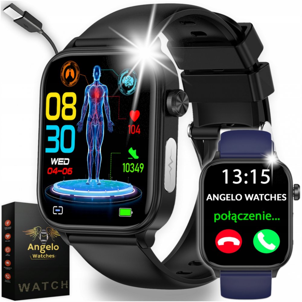 CHYTRÉ HODINKY PÁNSKÉ KARDIOWATCH MĚŘENÍ CUKRU TLAK KONVERZACE MENU PL✨ NOVINKA NA TRHU 2025! Chytré Hodinky značky Angelo Watches®