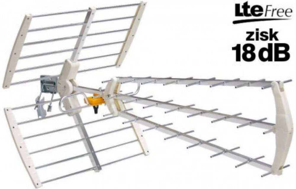 Televizní anténa pro příjem pozemního DVB-T2 vysílání.
