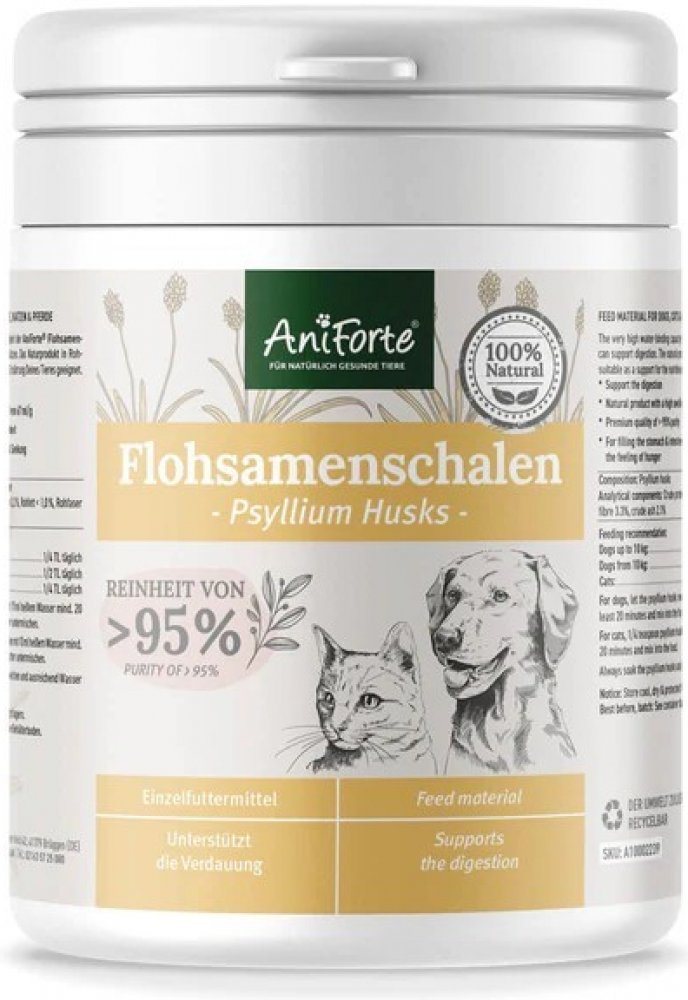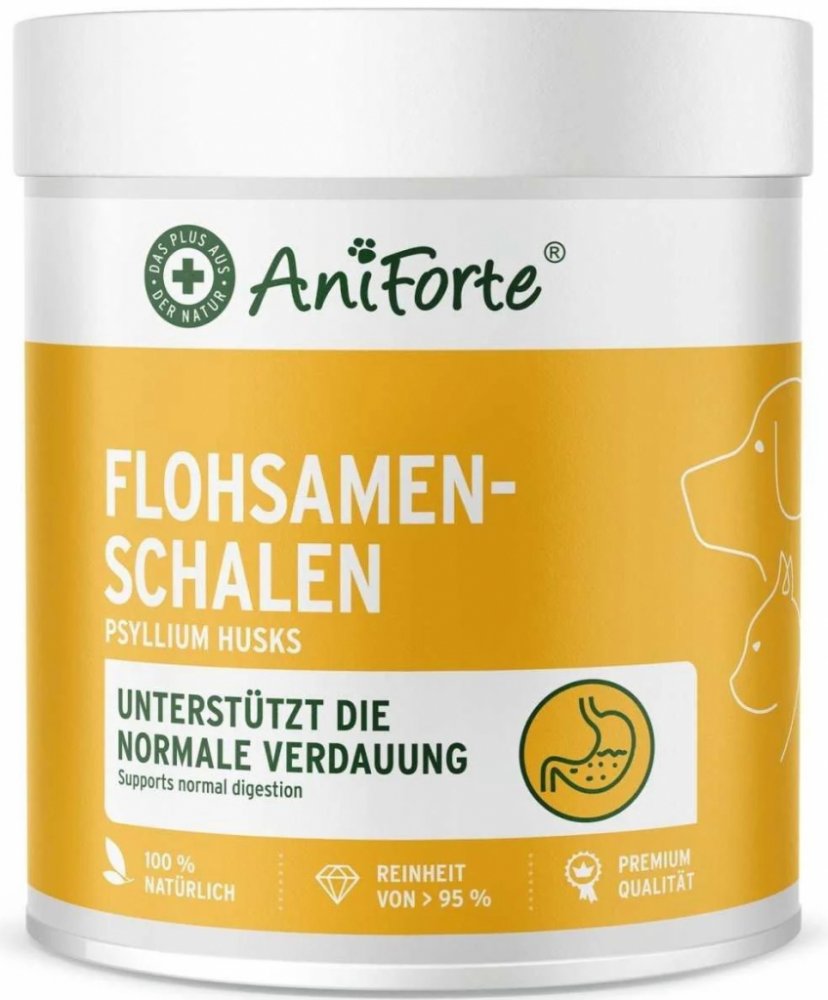 AniForte® slupky Psyllia jsou užitečným doplňkem krmiva pro podporu trávení a stabilizaci gastrointestinálního traktu. Přírodní produkt dodává vašemu čtyřnohému příteli cenné živiny a může mít pozitivní vliv na funkci střev. Psyllium jsou vhodné k naplnění žaludku a střev, protože zvyšují obsah žaludku a snižují tak pocit hladu.