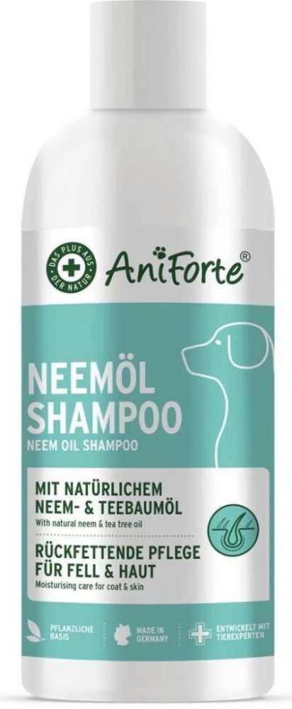 AniForte® Neem Oil Shampoo je šetrný k pokožce a příjemně voní. Díky svým hydratačním vlastnostem je také výbornou hydratační péčí o pokožku vašeho mazlíčka. Dodává srsti půvabný lesk a srst se také snadněji rozčesává. Obsažený neemový olej je tradiční indický lék a získává se ze semen neemového stromu. Tea tree olej podporuje vašeho čtyřnohého přítele v případě svědění (podrážděné pokožky).