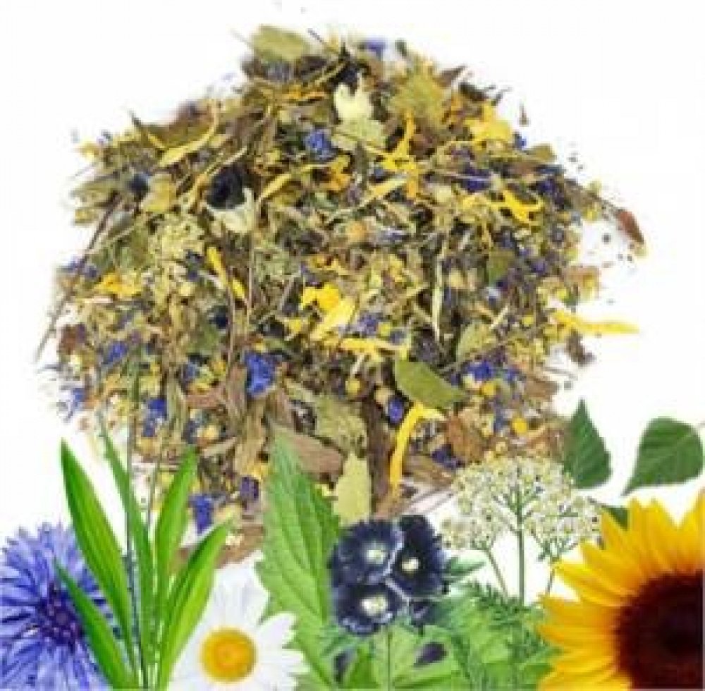 Složení: jitrocel kopinatý (listy, květ), květy chrpy, květy heřmánku, listy kopřivy, řebříček (stonek, květ), okvětní lístky slunečnice, květy topolovky, listy břízy