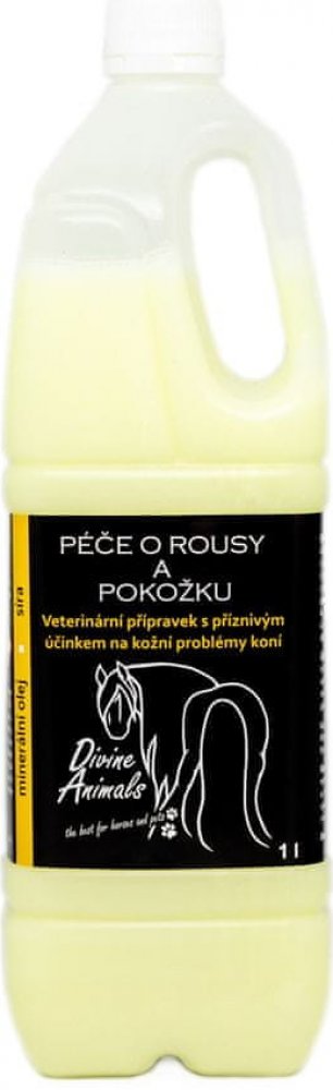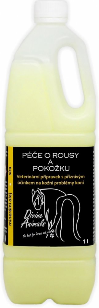 Minerální olej se sírou pro péči o koňské rousy a pokožku - přípravek na stejné bázi jako známý pig oil. Síra má antibakteriální, antimykotické, antiparazitární a keratolytické účinky. Minerální olej udržuje rousy čisté a hebké. Přípravek příznivě působí na kožní potíže (končetinový svrab, plísně atd.), nepříjemné svědění a napomáhá k odstranění drobných stroupků, lupů a zr...